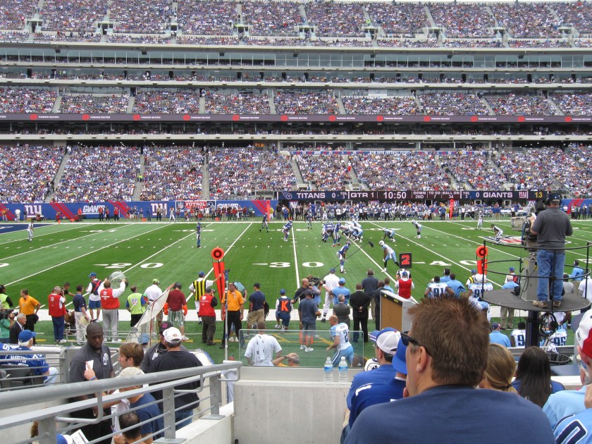 As for the game…yikes. I’ve watched a lot of football in my life and the Giants gave a top-five performance in terms of undiscipline and mistakes. They had four or five unsportsmanlike penalty calls that had big impacts on the game. In addition, a chop block in the end zone led to a safety, a penalty took them out of field goal range and they had a lost fumble and interception inside the Titans ten yard line. New York was down 10-0, before tying it up before the half on an Ahmad Bradshaw 10-yard run. So despite the mistakes, they were still in it. However, Tennessee took control midway thru the third after the aforementioned safety and then a quick six play TD drive. They went on to win 29-10, despite being outgained by a whopping 200 total yards (271-471), which goes to show the amount of mistakes and penalties. Tennessee’s Chris Johnson ran 32 times for 125 yards, while Eli Manning threw for 386 yds. It was funny because during the game my Bills (who are so dysfunctional and had such a piss-poor offseason start to re-building) were somehow hanging with New England and I was anxiously awaiting a game highlight on the scoreboard to see what was going on. By the way, the weather for our game was as perfect as it gets. Skies were overcast, so the September sun wasn’t scorching down and the temperature was 70. Just perfect.
