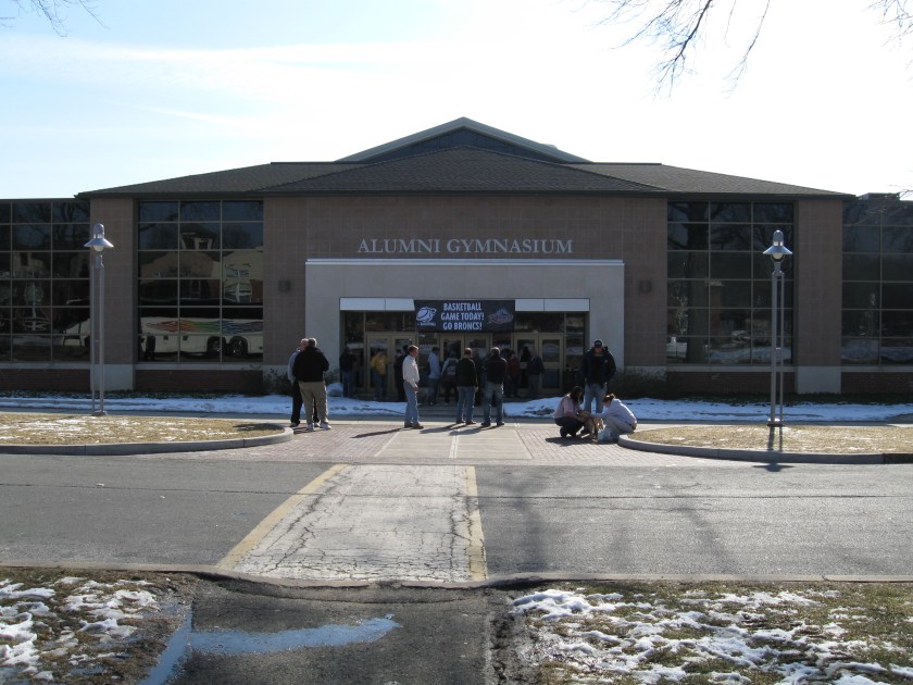I should go to Alumni Gym more often. Rider University’s tiny arena (or gym) is located in Lawrenceville, NJ and though the 1,650-seat facility is not on The List, I have visited it twice now for a couple basketball games. The first time I made the hour and a half drive from my house was in 2009 to see a great MAAC battle between Rider and Siena (the “Onions, Double Order!” year the Saints beat Ohio State in the tourney). In that game, this happened:
