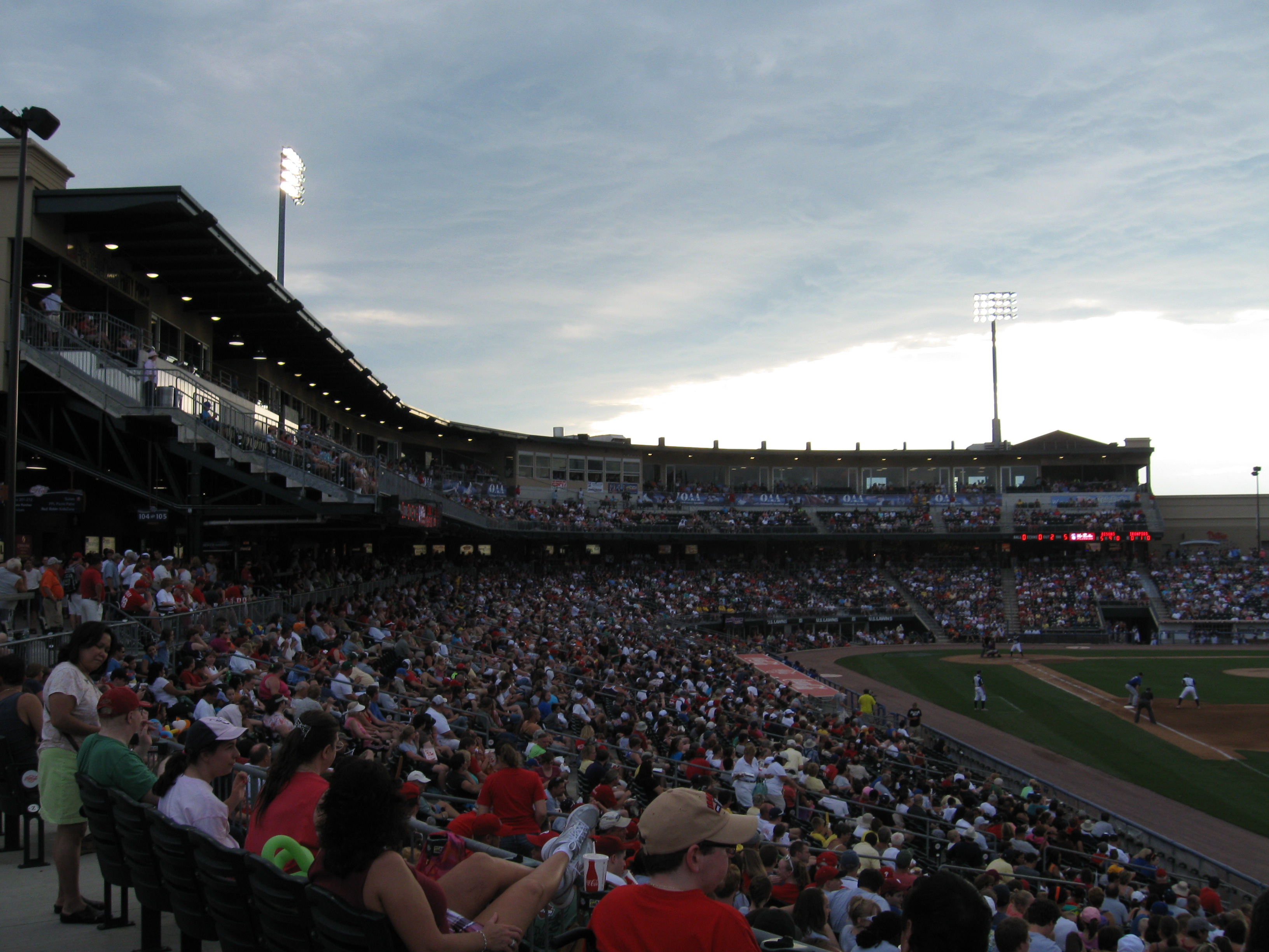 I warmed up to the seating design too as the intimacy is nice and it feels a lot more personable for a Triple A ballpark. Those exclusive seats really aren’t that bad when you consider the “Dugout Suites” only cut into about a 1/3rd of the seating bowl behind home plate. Also, the upper-deck club level seats are a great deal as $14 gets you the seat and access to the enclosed club/bar up there. In fact, the whole experience is a deal with reasonable concessions, most seats under $10 and parking at $3. The feel of a hang-out continues here with the abundance of places to stand and watch the game, including many rails for your food and drink. Though, I still feel the park is more geared to a place for convening, rather than watching baseball, I got to hand it to the fans who continue to come out in droves. LV led the ENTIRE minor league baseball circuit last year in attendance at 9,227 per game and continues to lead the minors again this year (at 9,161 as of July 30th). This area certainly is deserving of baseball and its great to see it here. Most of the region is comprised of Phillies fans and they care very much as it seems like there is a good relationship of rooting for the Ironpigs and watching the young Phillies grow.
