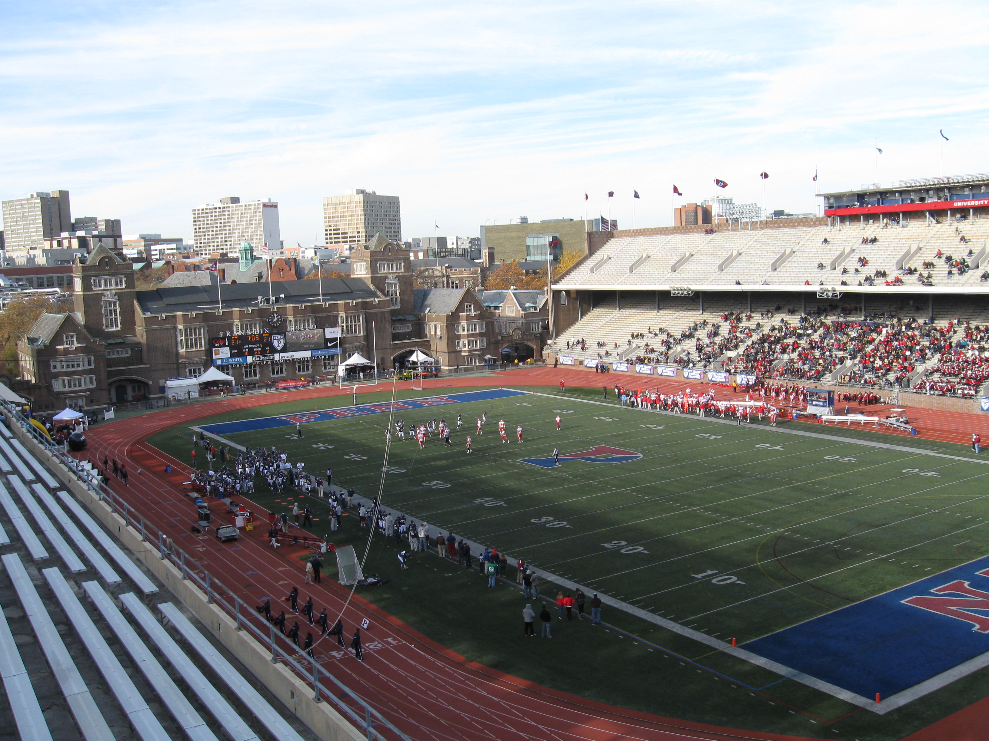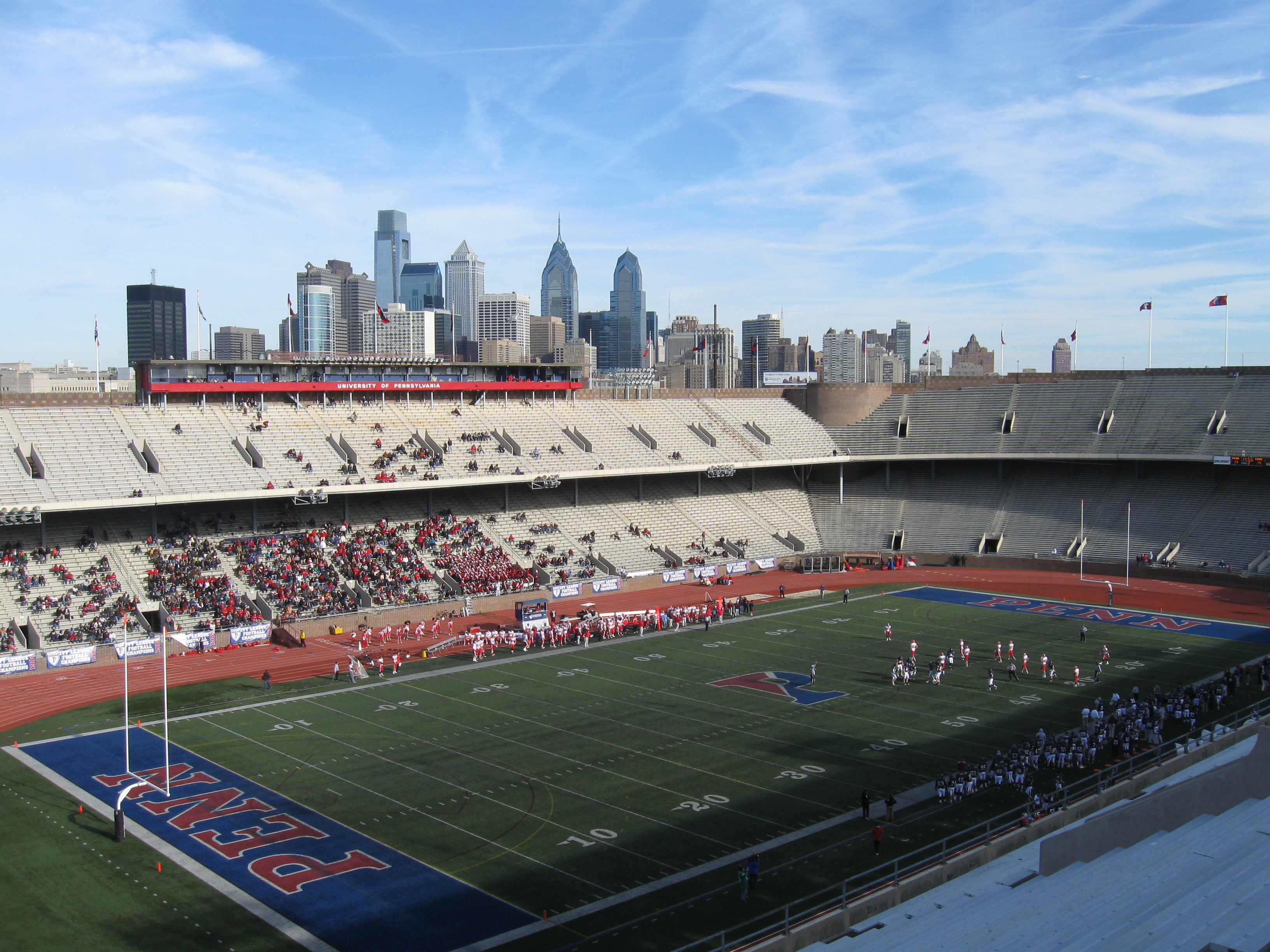 Back in January, I visited The Palestra on the campus of the University of Pennsylvania in Philadelphia. It was a venue that I had long known about and eagerly anticipated a visit to as it was well known to college basketball fans. Saturday, I went back to Penn to see another venue, one that it is older and oozes just as much nostalgia, but yet doesn’t get the love like the basketball arena next door. Franklin Field is home to Quaker football and a place that also takes fans back into time. Along with hosting football, the Penn Relays have been held here since 1895 (that’s right as in 1800s) , hence the track around the field. Normally, I’m always against tracks in football stadiums because it cuts back on the view and is less intimate, but in this stadium its OK because of what that track represents. The stadium also was home to the NFL Eagles from 1958-1970.