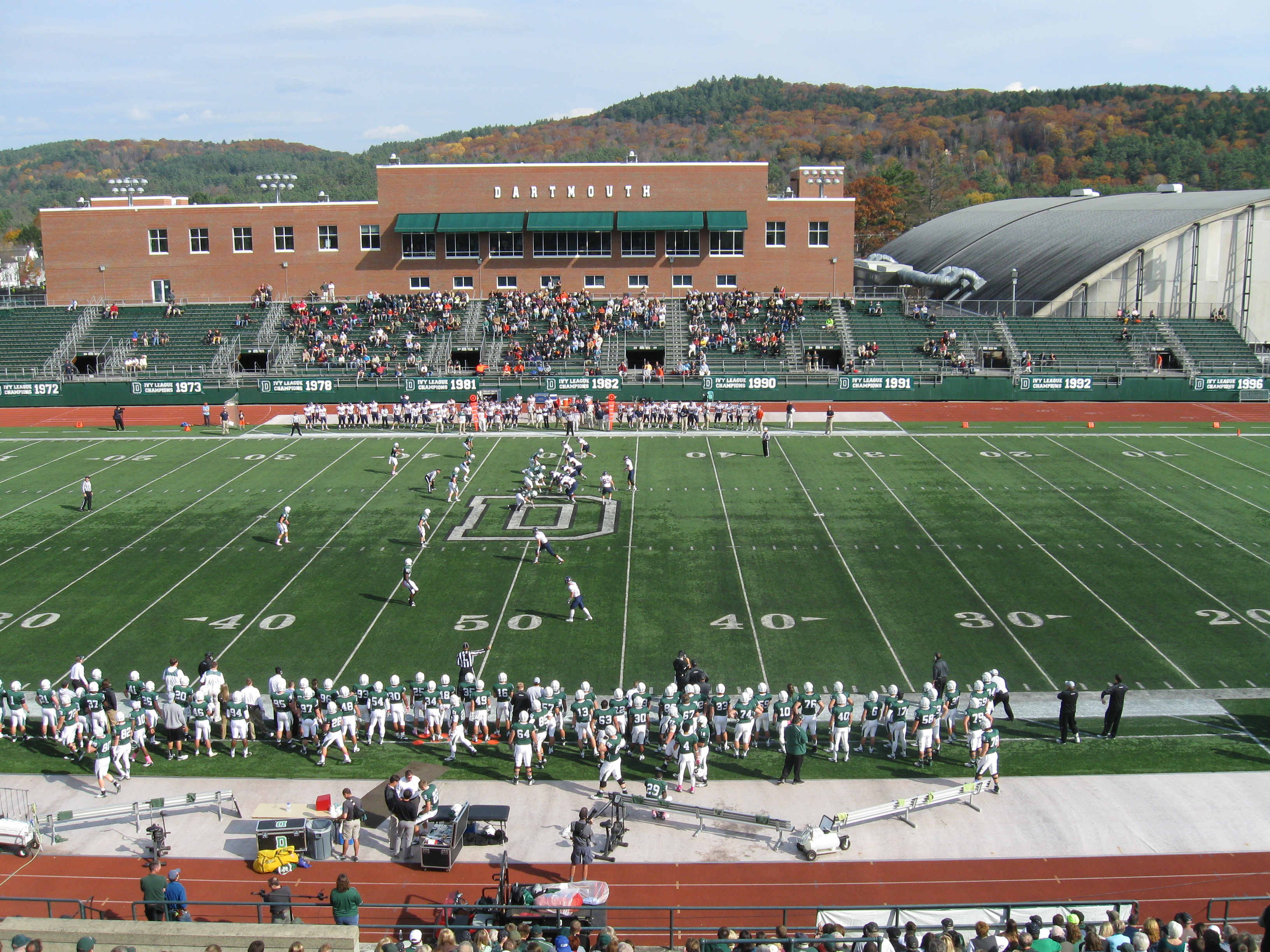 Saturday was a beautiful October morning and we made the 2.5 hour drive up I-91 to Hanover, NH. The town is quintessential, New England complete with surrounding hills and changed leaves. Dartmouth University and Hanover mesh wonderfully. We parked in town and walked sections of campus including The Green and Baker Library before heading down charming Main Street, where everybody was out and about walking or biking. Early lunch was at Molly’s before driving to a lot that provided a free shuttle to the football game. One problem, the shuttle didn’t show up! We got there at 12:30 and by 12:55 it still wasn’t there. Thankfully, it was a short walk and we went 15 minutes by foot to Memorial Field (the shuttle did eventually make it and made the rounds after the game, not sure what happened).