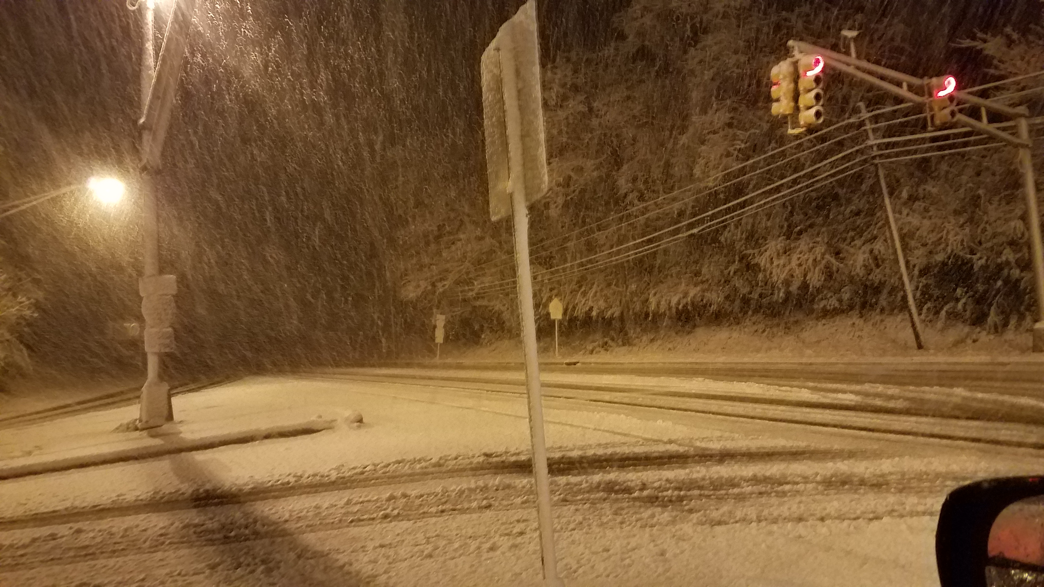 After the final whistle, I stepped outside to big, fat, sloppy snowflakes. Unfortunately a change from rain to heavy snow was going to last just a 4-hour period that aligned precisely with my drive home. I knew there would be a couple trouble spots: Route 79 from Ithaca to Whitney Point and the dreaded Poconos. With the elevation display on my GPS on, I headed out and got thru the first long stretch on the nervy two-lane road ok. After fighting off hallucinations while driving thru the constant steady snow that made it feel like it was “Star Wars”, road conditions were fine until the Scranton area, where coverage even at an elevation of 900 feet meant big trouble for the rise up to 1900′ in the Poconos. They had a solid 2-4″ with much of that on the roads and thankfully my wife’s Hyundai Santa Fe handled it ok at 25-30 MPH. That meant a white-knuckle hour before coming down the hill and seeing improving conditions. Even still, I was shocked at how hard it snowed and stuck when going thru NJ as my stomach dropping knowing our forecast for work did not go well at all. Four hours later, at 1:30 AM, I instead drove straight to work with jello-ie legs from the ride for a status check on how we were making out. The night didn’t end until I climbed into bed at 3 AM and as much as I enjoyed both Ithaca and Cornell hockey, it was a memorable trip for the wrong reasons. That’s the last time I make a journey with prospects of snow…..wait, didn’t I say that before?