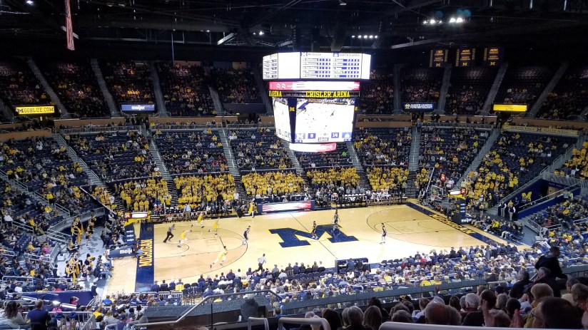 For the next game, I was eagerly watching the clock and my phone as traffic was building due to construction on 23-South. A huge thank you to Google Maps and technology as during my drive back to Ann Arbor, they deftly maneuvered me around 20 minutes of traffic and got me to the Crisler Center an hour before gametime. I needed every minute of that time as the arena is remarkably modern after a 2012 renovation. Concourse displays had so much for me to take in and I was really impressed at the crisp, clean nature of the building. I’ve always viewed Crisler as a dark and blah arena on the inside from my college basketball following and that is partially the case. However, arena seating is comfortable and their lack of a suite deck (replaced by “Champions Boxes” on a would-be middle walkway), makes for solid sightlines. Typical of most Power 5 programs, this non-conference game only filled half the building as the Wolverines played North Florida in a close one. Not until 10 minutes left, did Michigan pull away and the Ospreys look to have the capability to challenge for the A-Fun title this year. The students, while not as energetic or vocal as their Yost brethren, did fill their sections.
