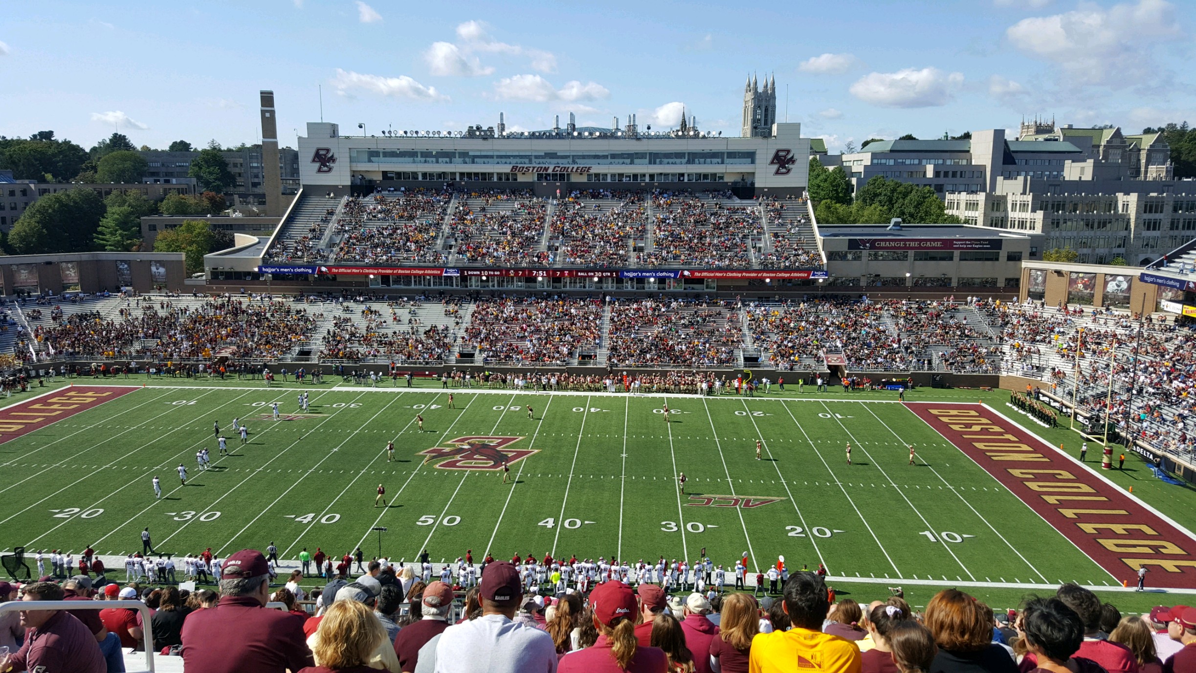 The Stadium itself isn’t anything special as the bleachered layout features a complete lower deck and then four, separate sections comprising of an upper deck. I did find the attachment with Conte Forum to be unique and was happy to see it open for exploring (they even use concession stands inside as they share the area with the stadium). I also found Alumni Stadium to be intimate and the setting to be nice, especially from the East Stands with Gasson Hall in the background. The game was against Temple, making it a “Conference” game in my fantasy world. You see, I’m a firm believer of geography dictating conferences and I was one that really disliked BC’s move to the ACC. I get it, but don’t like it. So, my conference (let’s call it the “Big East”) would be: Boston College, Buffalo, Connecticut, Massachusetts, Pittsburgh, Penn State, Rutgers, Syracuse and Temple. Hate away Happy Valley! The game was a high-scoring affair and BC continued piling up points with their no-huddle offense. They won 45-35 and RB A.J. Dillon was stellar again with 161 yards and 2 TD on the ground. At times, the game was entertaining, but I still am astounded to see how college football doesn’t get more flak for game length. This one was eight minutes shy of 4 hours and it featured way too many replay reviews. My brother and I passed the time by quoting Step Brothers and seeing how many situations we could apply the “Trophy Fish” line. The crowd was slow to arrive and for the most part, tepid, though they did rise to their feet and give a nice pop during touchdowns. Students showed up for the first half and then remarkably disappeared for the second half as less than 50% returned to their seats after the break. I did enjoy their sing-a-long to “Mr. Brightside” by The Killers. Didn’t know this was a new tradition and it was a nice surprise. I also liked “Ring the Bell”, something that made sense given the daily chimes that go off on campus.