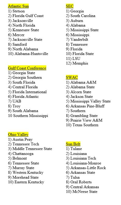 Atlantic Sun: In the South, the old TAAC almost seems to be a league in flux with members graduating to more “prestigious” leagues. I’m hoping for some stability here and many of these schools have some pretty good, newish facilities as well.