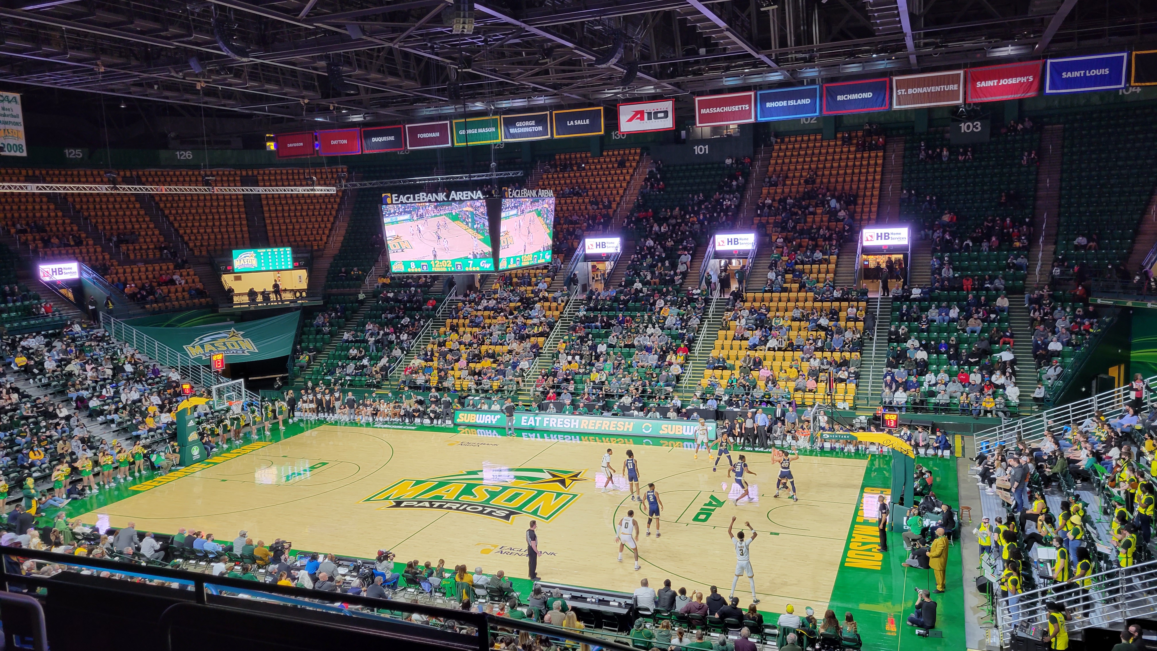 EagleBank Arena is an older venue and a traditional one that I am fond of. There’s lots of green and gold with a seating bowl that goes from floor to ceiling. At 10,000 seats, that is a ton of rows. It’s steep and conducive to building a lot of noise, even though it’s almost never full. The crowd is into the event from a cheering perspective, even if it is more family-oriented than other regional schools. The main driver of the atmosphere is the Green Machine, Mason’s pep band that has an edgier sound. Doc Nicks leads their energetic style, complete with a singer, DJ and (at times provocative) dancers. They played a relative rival also named George (Washington). I say relative, because it’s the VCU game that is really the big one. Against GW, Mason struggled with turnovers and poor shooting, however they got hot when they needed to as they turned a deficit that lasted much of the game into a win thanks to a 13-0 closing run. I met up with my cousin’s family at the game and enjoyed a great event.