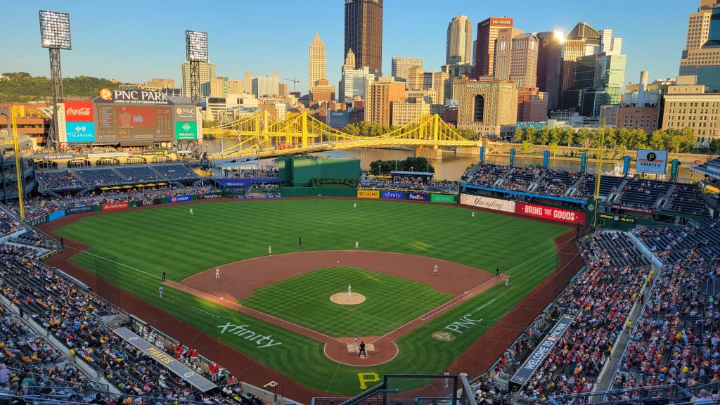 This year’s football trip brought me to the home of the Mountaineers. But first, we made a stop in Pittsburgh as my brother (Eric) wanted to see an MLB game. I’ll never say no to seeing PNC Park, even in spite of the Pirates being terrible. The journey into the Steel City was fine and a little construction brought me down Route 28 from I-80 as I saw some small towns I wouldn’t normally pass by. We stayed in a hotel within walking distance of the ballpark and I quickly realized that the Tennessee Volunteers were in town. They were playing Pitt at nearby Acrisure Stadium (Heinz Field) the next day. The sea of orange certainly travel well and there had to be a thousand of them that took in the Pirates game too, leading to a weird dynamic in the ballpark (including a few chants). Vols fans, Cardinals fans and Pirates fans saw Pittsburgh grab an 8-2 victory over St Louis on a gorgeous night in the ballpark. This was my second time at PNC Park and the accolades are all warranted. It is a stunning place that I absolutely love.