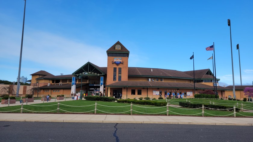 The final re-visit came last Saturday down in Lakewood. It was an interesting drive from North Jersey as I made my way through downpours and hail into a different world as the sky was kind of orange from a nearby brush fire. I mentioned that so many of these NJ-PA ballparks are all similar and this is no different. Same colors and shallow seating bowl, but the difference at ShoreTown Ballpark is “The Boardwalk”. Even though the Shore is 20-30 minutes away, that is understandably the theme here. Not a lot of baseball focus as you have boardwalk games, a huge outdoor bar and lifeguard chairs to give that feel like you’re along the beach. The season opener had a packed house, but this game only had 500-600 people on hand. It’s April, so I wasn’t expecting much. In the middle of summer (or on Thirsty Thursday) this is the place to be.