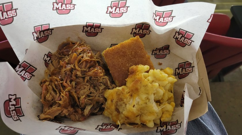 BEST IN-STADIUM FOOD: Mullins Center…..I may not be a fan of “The Flagship”, but I really liked the food at their venues. UMass Dining can be thanked for that and what they had to offer certainly outdid most other campus food. When I went to a hockey game, I opted for their Pulled Pork platter, which included some really good Mac & Cheese. The next afternoon for basketball, I sampled on the Ice Cream from their Creamery. Emmm-emmm!