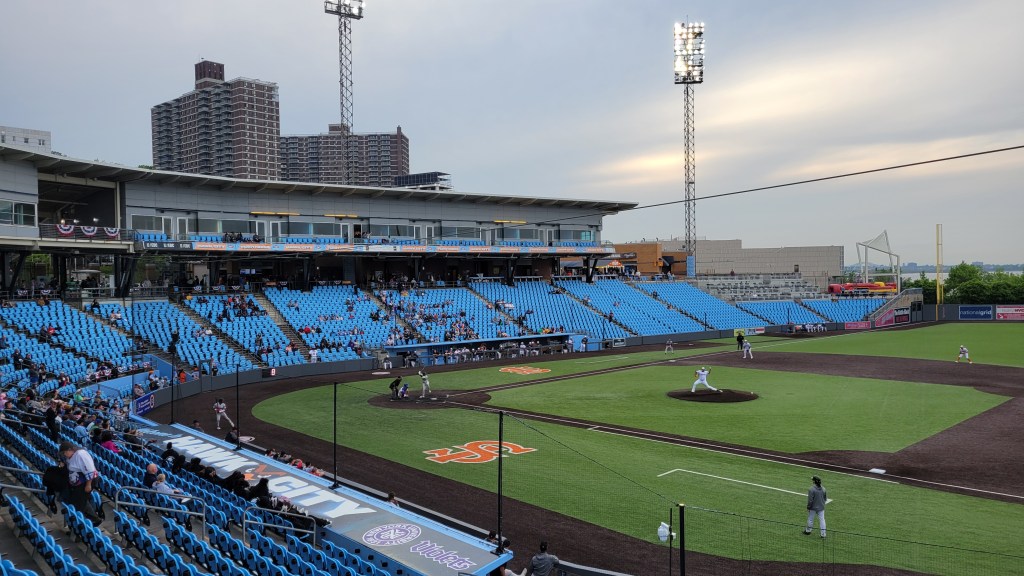 While the rest of New York City was fixated on either the Knicks playing in Game 6 or the Yankees-Mets up in the Bronx…I made my way to the forgotten borough, Staten Island. The City’s least populated and most distanced borough has a professional baseball team and for a few decades it was the Yankees’ short-season ‘A’ affiliate in the NY-Penn League. During the minor league restructure in 2021, the surprising move was made to Hudson Valley, while Staten Island would get a team in the independent Atlantic League. Good news with that is they got their own identity (FerryHawks) and beautiful SIUH Community Park nicely reflects that. Bad news is that attendance has been poor and while there should be some SI pride, there is very little attention on the team.