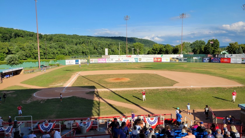 In successive weekends, I made a couple of sports visits that are about as opposite end of the spectrum as you can get. Let’s start with Elmira where I made a quick stop last Friday evening on my way to Rochester for a family event. The purpose was to revisit Dunn Field and an Elmira Pioneers game. My youngest daughter was with me and we first went downtown for a bite to eat at Vincenzo’s. That was fine and all, but walking the city for just a few minutes (Wisner Park) was not enjoyable. Meth heads and other questionable characters wandering around cut that stroll real short. The drive to Dunn Field 5 minutes away is a really neat one as you’ll pass plenty of houses while driving down Luce Street. At the end of the residential area, it opens to a grass field and then eventually the stadium. It is a unique setting, especially when you see people walking or riding a bike from their house to the game. I was last here 21 years ago for an Independent League game and now the Pioneers are part of the Summer-Collegiate PGCBL. It’s a wacky world, these summer ball leagues as you can run into teams/stadiums that are very professional like or you find a team with organizational skills that wouldn’t pass the high school level. I’d say Elmira was closer to the latter despite playing in a 4,000-seat stadium.