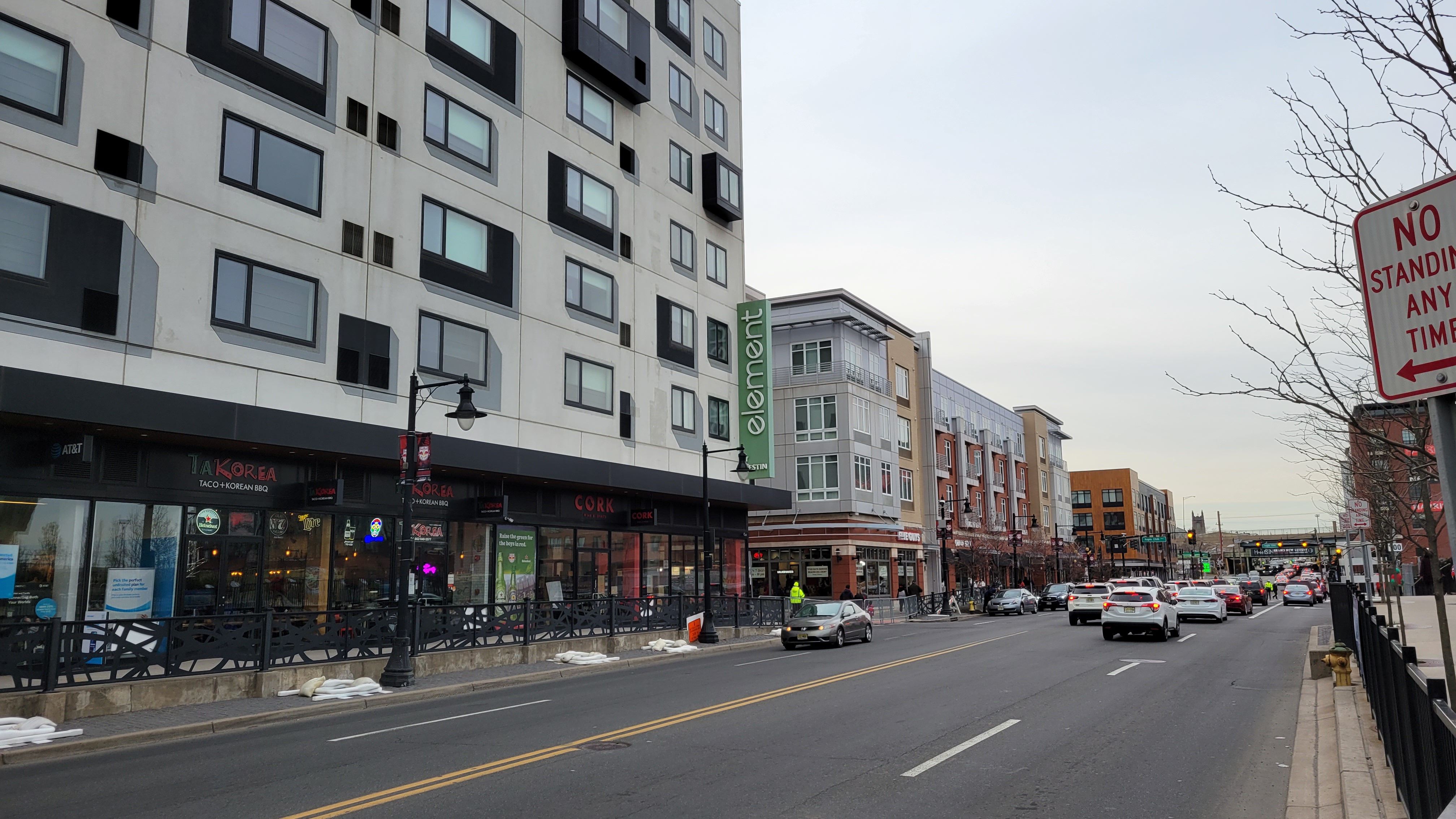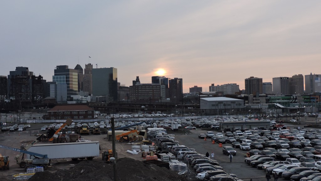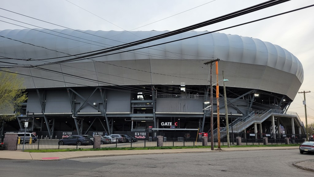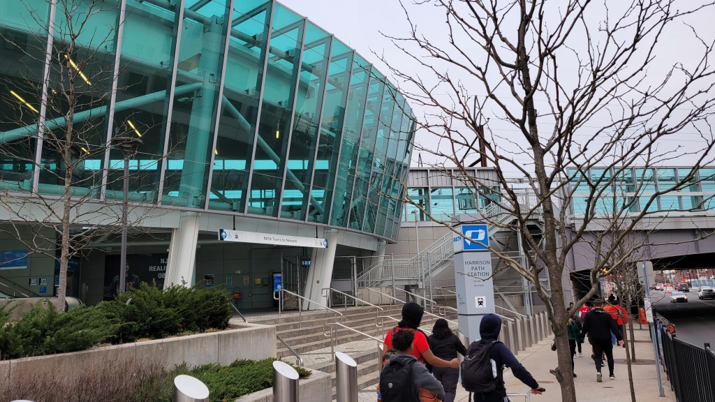 The new development has altered parking options in the area and likely will continue to do so. There is still a rather large lot near the train station and while this is the closest option to RBA, it will also have the most congestion, especially as people walk through it. Northwest of the train tracks, there are some lots that can be used. What I found best was the very large garage at the Harrison Parking Center. It was easy to navigate and the walk at 12 minutes wasn’t terrible (though I could’ve done without the overzealous crossing guard needlessly blocking off Somerset St to pedestrians). The best route is via I-280 as using I-78 to the south (or I-95) means more navigating, likely via the McCarter Highway (Route 21) in Newark. I had no problem coming in and the aforementioned parking garage is signed the whole way. Leaving the garage was fine until I got to Bergen Street. There, it took me 15 minutes to get back on I-280 West, because police directing traffic did a bad job, constantly letting streams of cars go from Frank Rodgers Blvd and then only letting a couple at a time go from our direction. Note that the entrance to I-280 has no sign and is a weird turn, however traffic and people directing means no trouble as to figuring out where to go.