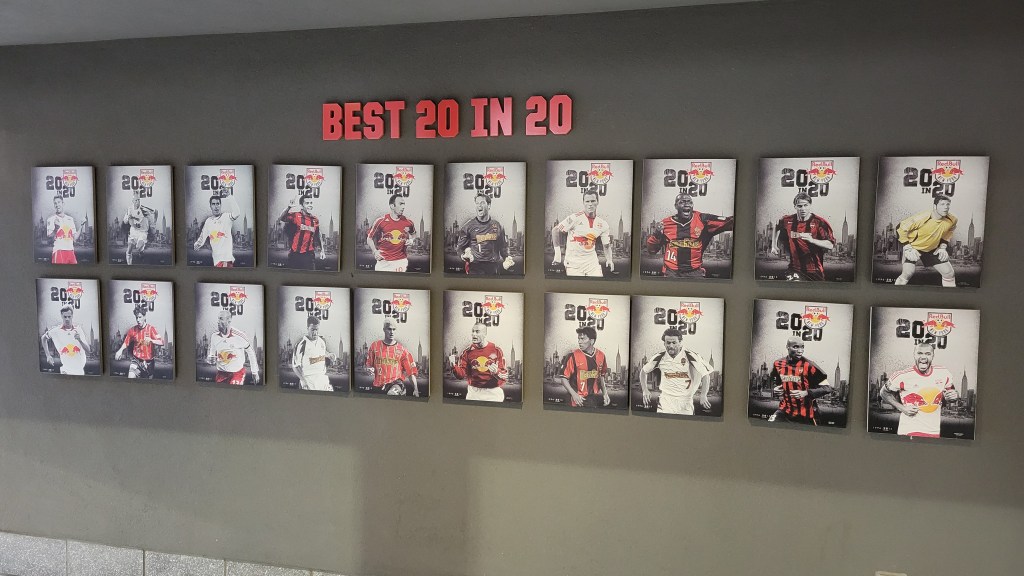 It’s rather limited, despite the franchise being almost 30 years old. The only history displayed is what is on the upper beams of the north end concourse. Pictures and a line describing a big moment can be seen here. Near the Bodega is a “Best 20 in 20”, featuring a poster picture of the best franchise players. On the façade of the suite level are the years of the Supporters Shield wins and a “Legends Row” featuring one player.