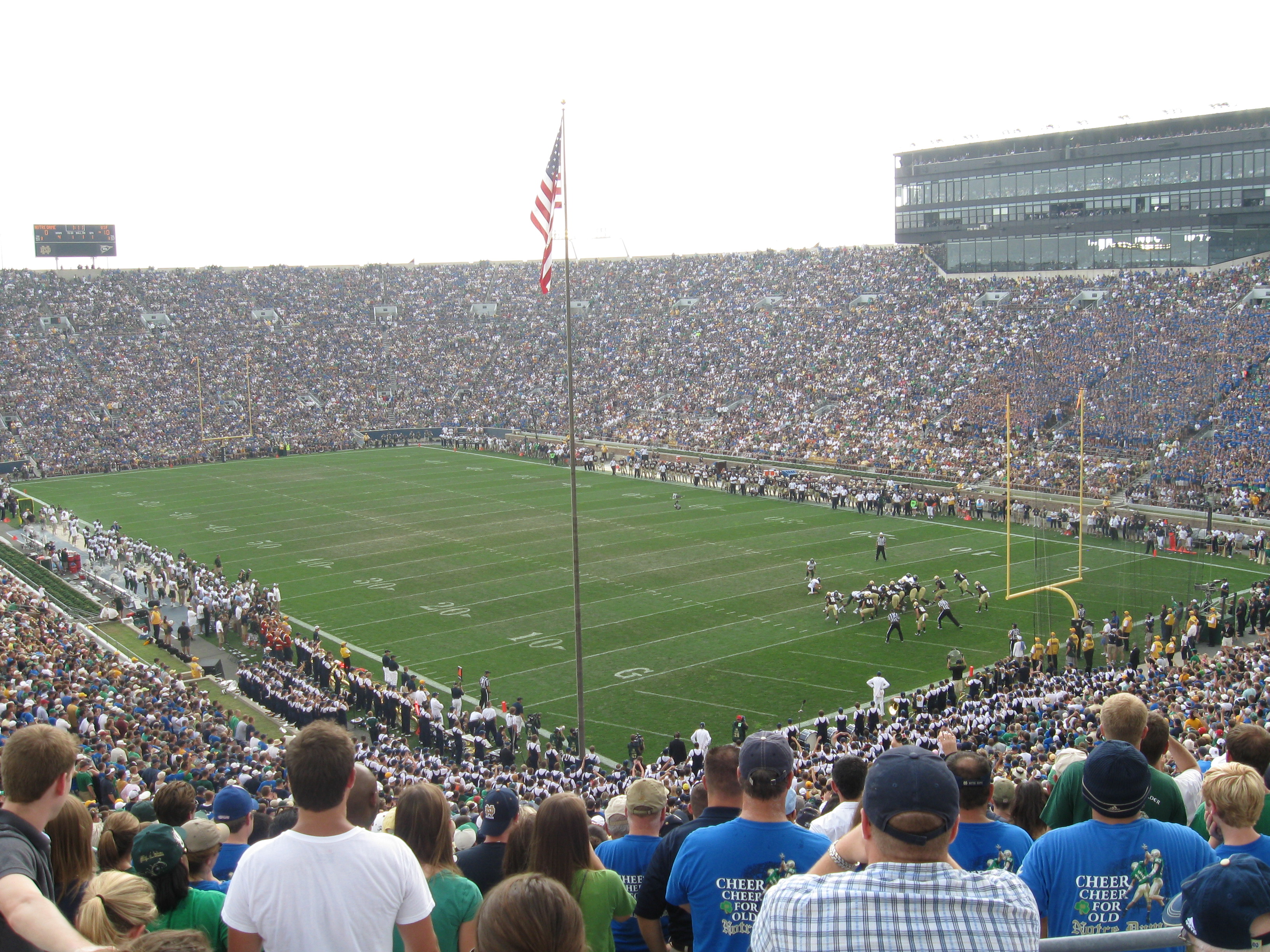 A sellout streak of 220 games that dates back to 1973 says it all. And this isn’t one of those “announced sellout streak” (or a Nebraska Cornhuskers one). Watch on TV as you’ll hardly find an empty seat and that was the case for our game as it was a legit sellout. Even after a two hour lightning delay, the stadium was back to about 90% full when the game resumed in the second half. Notre Dame is a brand name that doesn’t just have fans locally or alumni, many follow the team nationally for a variety of reasons.