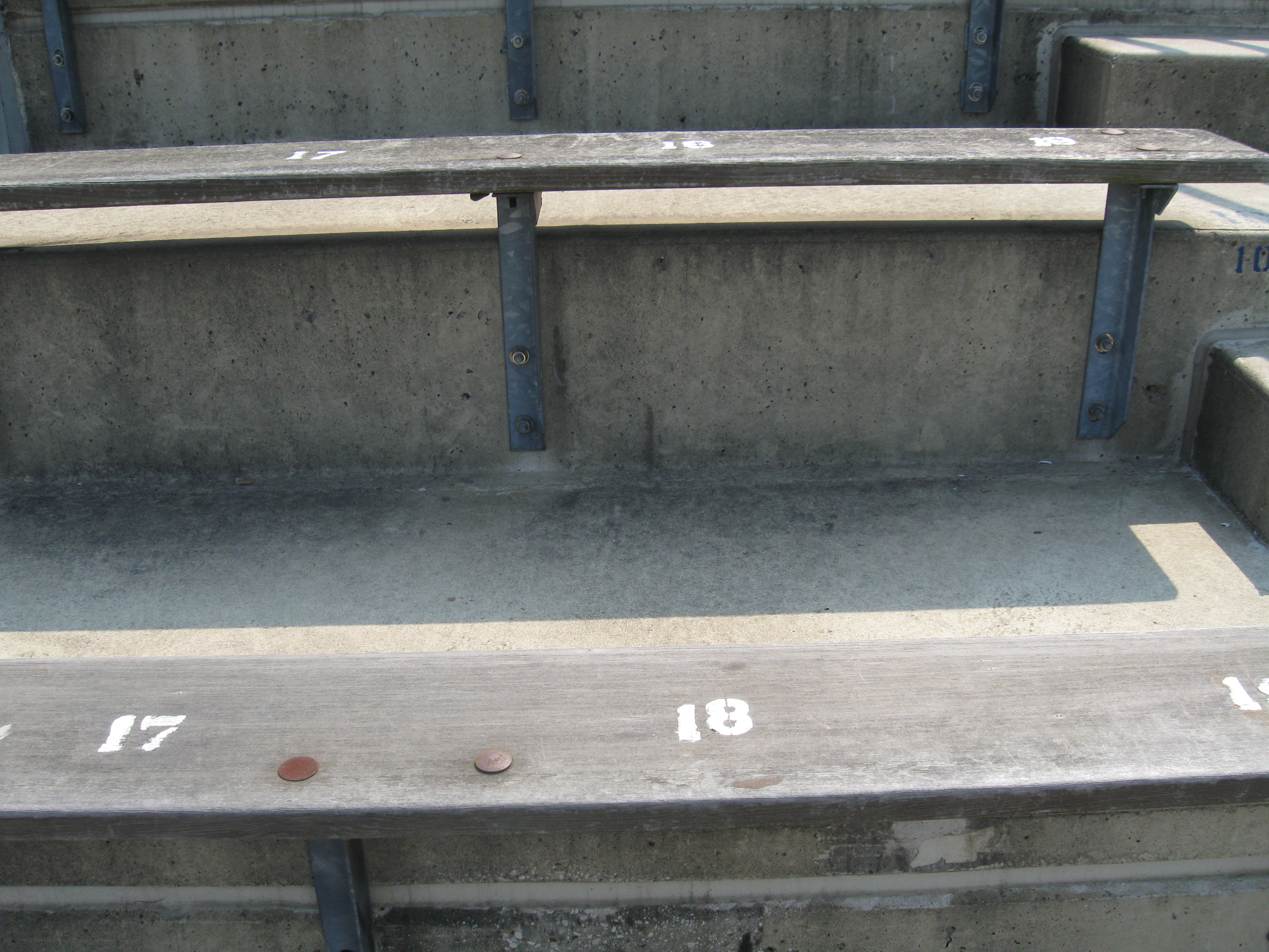 Not much has changed since 1930 as Notre Dame Stadium is refreshingly simple on the inside. A two-level, enclosed rounded rectangle is the seating design and it is remarkably intimate and close to the field for 80,000 seats. Most of the seating is in the first level and it’s not really an elevation change between the two levels, it’s just separated by a walkway in some parts of the stadium. That second tier of seating was added in a 1997 renovation. Nearly all seats are bleachers, set on concrete and they are tight, which is common with most college stadiums when it’s packed. The second level has an older style bleacher as it is wooden. Adding to the lack of comfort (especially on this hot day) is the absence to find any sort of shade or weather protection. The only structure above the seating bowl is on top of the west sideline, where a glass-enclosed press box is located. It is surprisingly small given the popularity of the team and it only extends to each 30 yard line. If you’re going to bank on tradition, it’s great to see consistency on that throughout the whole stadium and that includes the exclusion of suites. Even better: No advertising in the stadium. The only outside view at Notre Dame stadium is from the higher level seating in the Southern sections. That is where you have the stunning view of Touchdown Jesus and in the corner, the Golden Dome of the Main Building.