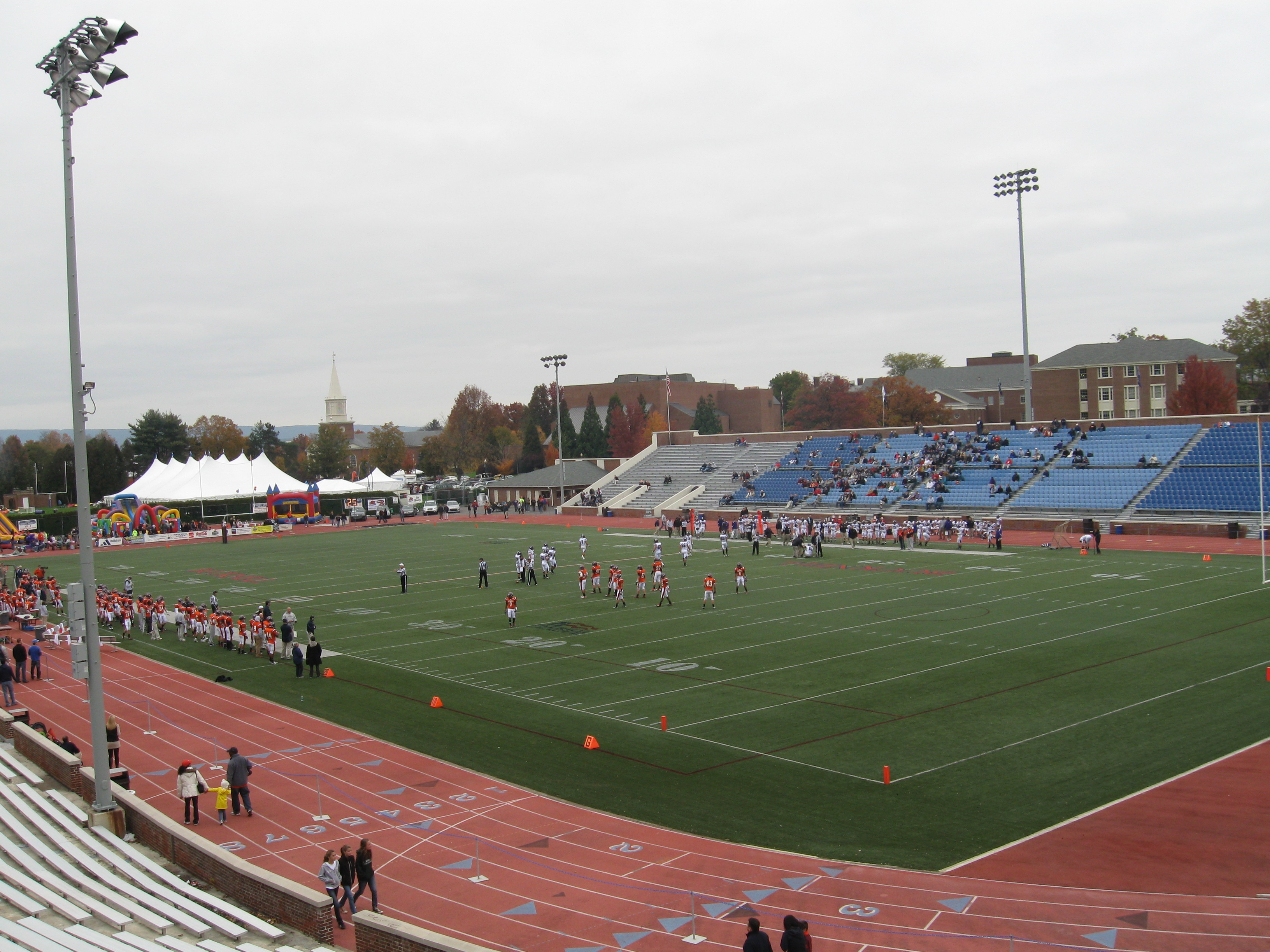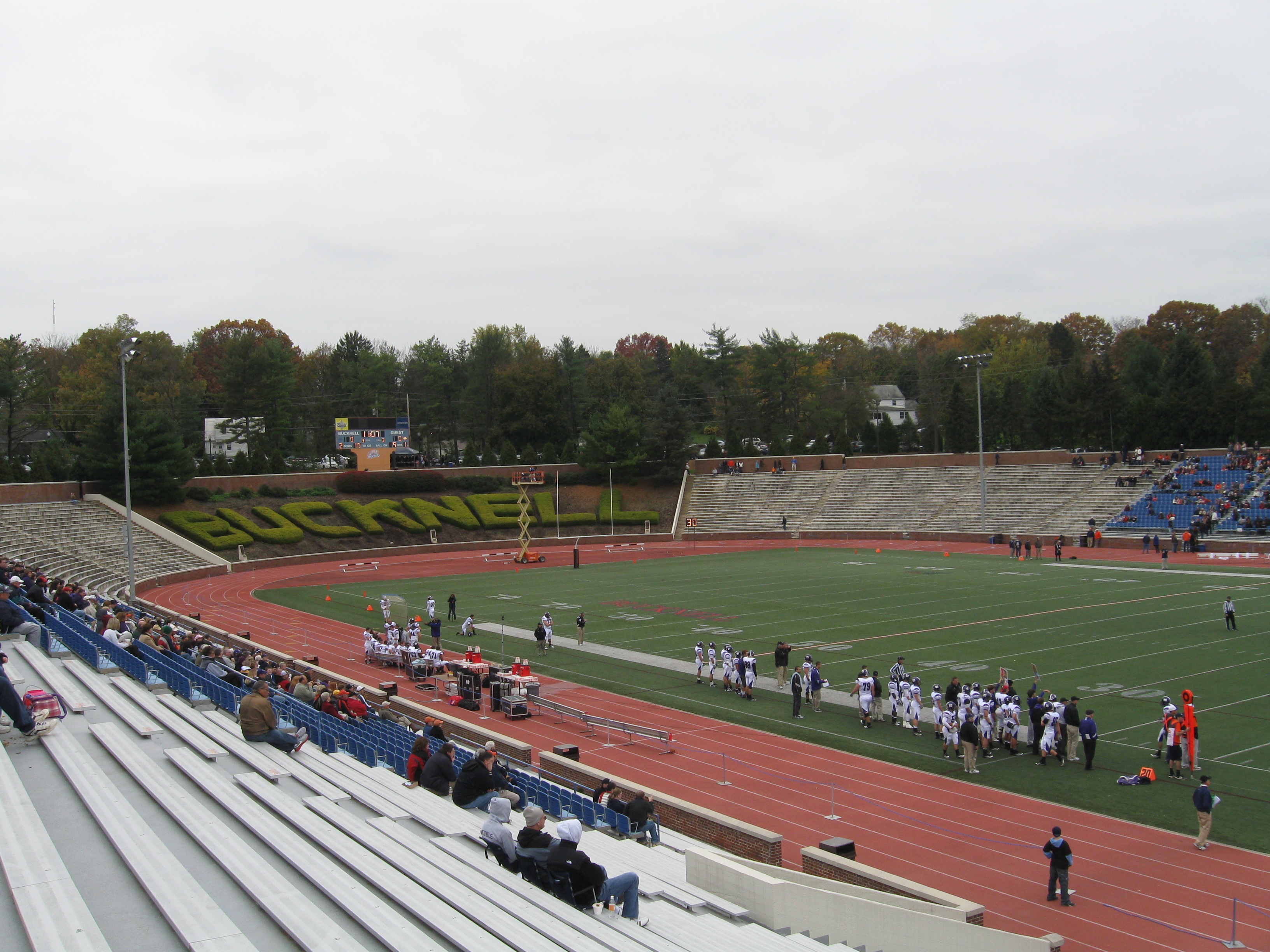 Lewisburg is a quaint, charming borough of only 5,660 that sits along the West branch of the Susquehanna River. While the small town will of course lack in tourist attractions, many will find centralized Market Street as a wonderful road to stroll and grab a bite to eat, like at the Lewisburg Hotel. Campus is not far away and you could even take a long walk there from downtown. The stadium is located on the South end of a hill that splits the campus.