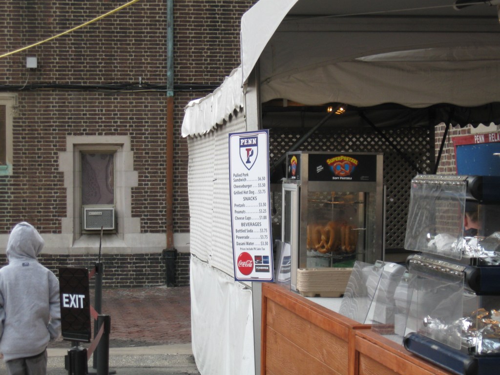 Most fans walk in via the Northeast gate at field level and this provides a different initial vantage point than most stadiums. An open end zone is set up with a few merchandise stands, along with a concession. There is also a small kiddie play area in the corner. Walking towards the Penn sideline, fans can either go into the stands or into what seems like a hidden concourse. It certainly feels hidden in the beginning of this walk as you have to go through a dark, creepy walkway. It opens up a little bit after that, but remains narrow and dark (remember this was built in the 20s).