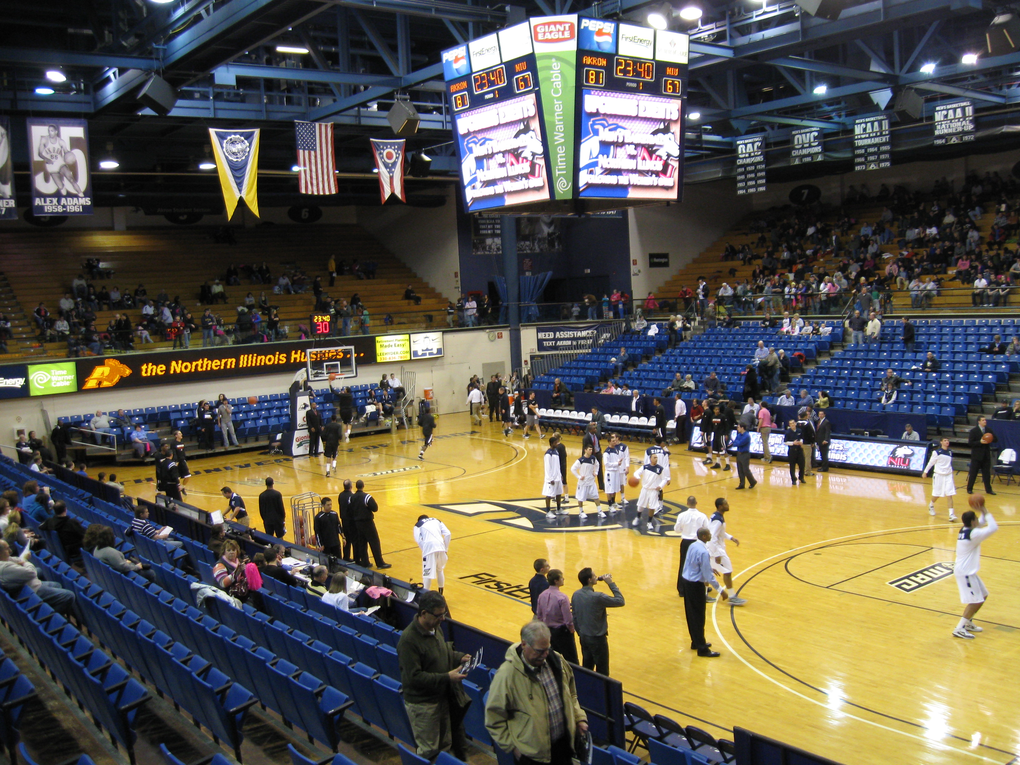 The atmosphere was good in the JAR. Fans stood before the first basket was scored and they made some decent noise after each point. Knowledge of their opponent was pretty good from listening to the folks around me. There were no organized cheers or chants during the game and one disappointment was the lack of students as the really small baseline student sections were enough to hold the kids. Even though Akron basketball seems to be more of a community affair, it is a good overall experience for a MAC squad