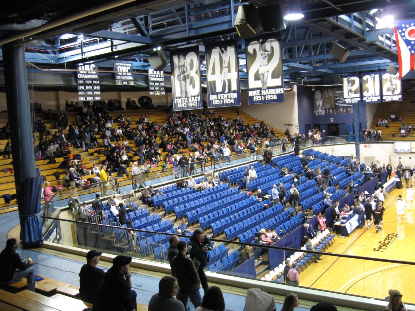The name “Zips” is quite unique to Akron. A contest led to “Zippers” being selected as the team nickname in reference to the rubber overshoes produced by BF Goodrich in Akron. This got shortened to Zips in the 1950s. The kangaroo mascot was selected for its agile, yet powerful characteristics……There’s a nice story about the merchandise stand known as Porky’s Place detailing a man who long sold Zip apparel……Current Head Coach Keith Dambrot previously coached Lebron James at St. Vincent – St. Mary’s High School, also located in Akron.