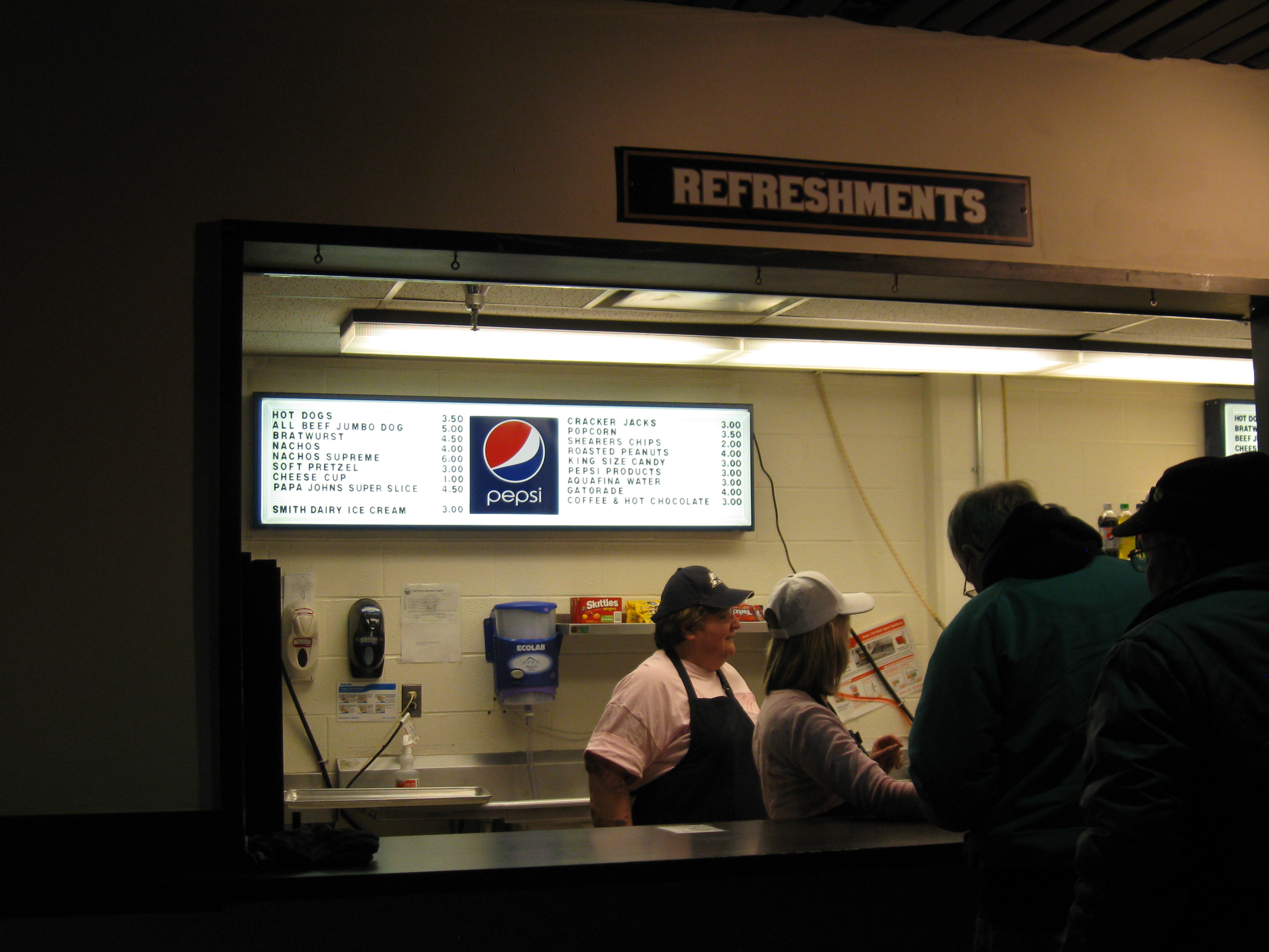 Upper seating is either $10 or $15 depending on whether you go with a bleacher or a regular seat. The lower seating is $30, a bit high for the MAC, but not as high as the $40 I saw earlier in the day at Kent State. The Ticketmaster fees at Akron will add a few annoying dollars. Parking and programs were free, while the concessions were OK ($3.50 for a hot dog, $3 for a Pepsi).