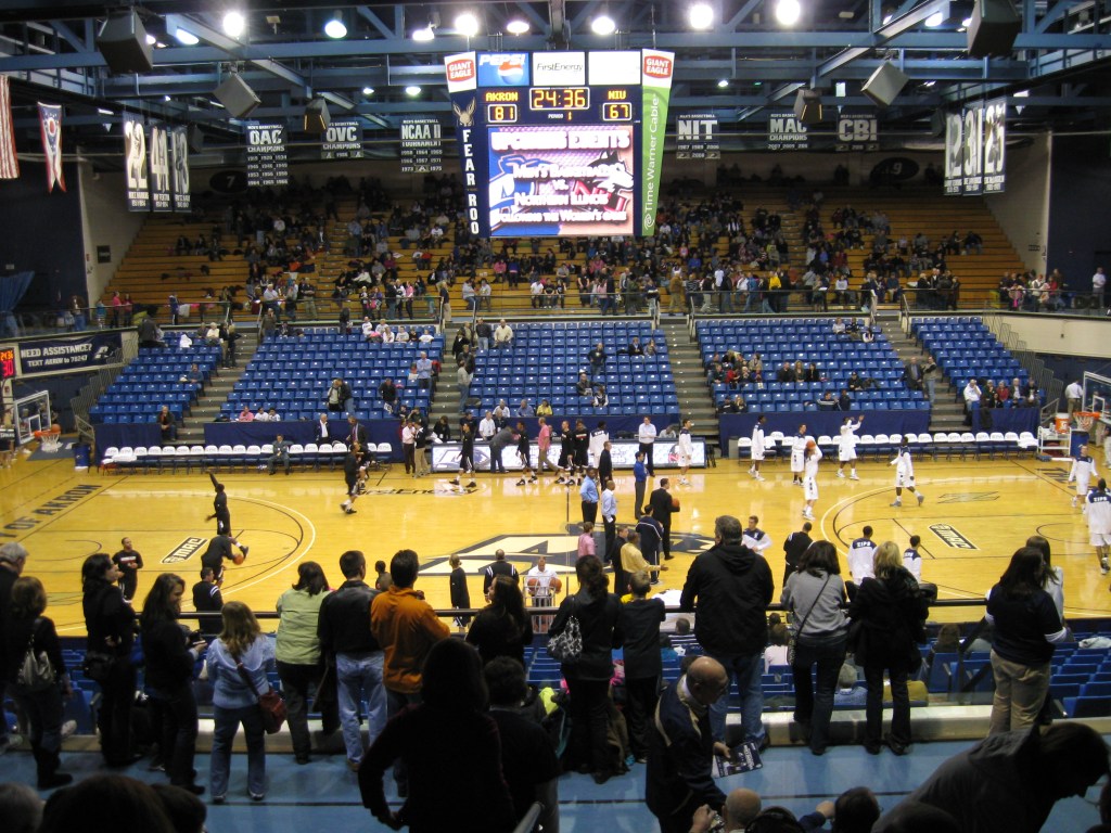 Rhodes Arena is on the southeast part of campus, around the other athletic facilities and the fraternity / sorority section. Mostly a commuter school, there’s really not much to get excited about immediately nearby. A mile away features the downtown core and it’s very quiet despite having a few good restaurants. The only other spot worth checking out is the Stan Hywet Hall & Gardens.