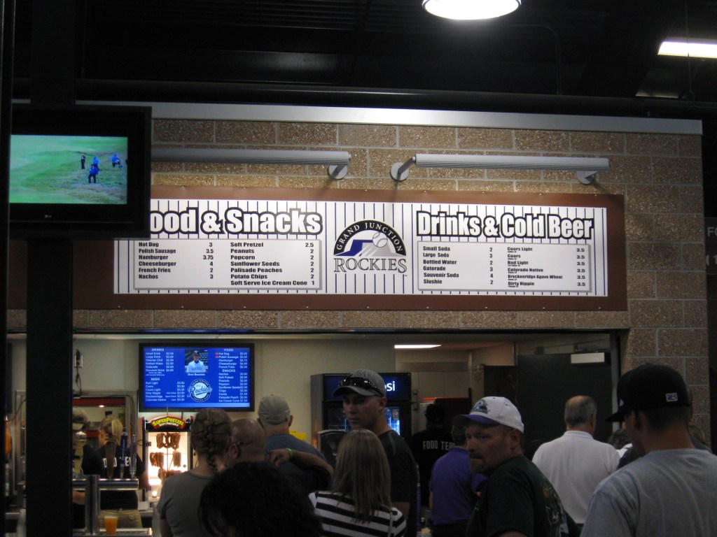 Grand Junction has a regional airport and is located off of I-70. Getting to Sam Suplizio Field from anywhere in the Valley is generally easy, it’s the parking that is the big problem. A tiny lot in Lincoln Park couldn’t even come close to holding a crowd that filled about a third of the ballpark. We got there a half-hour early and found our option being parking on the street of nearby Gunnison Ave. Beyond that, I suppose street parking is all there is as the Rockies website doesn’t provide any help on where to go.