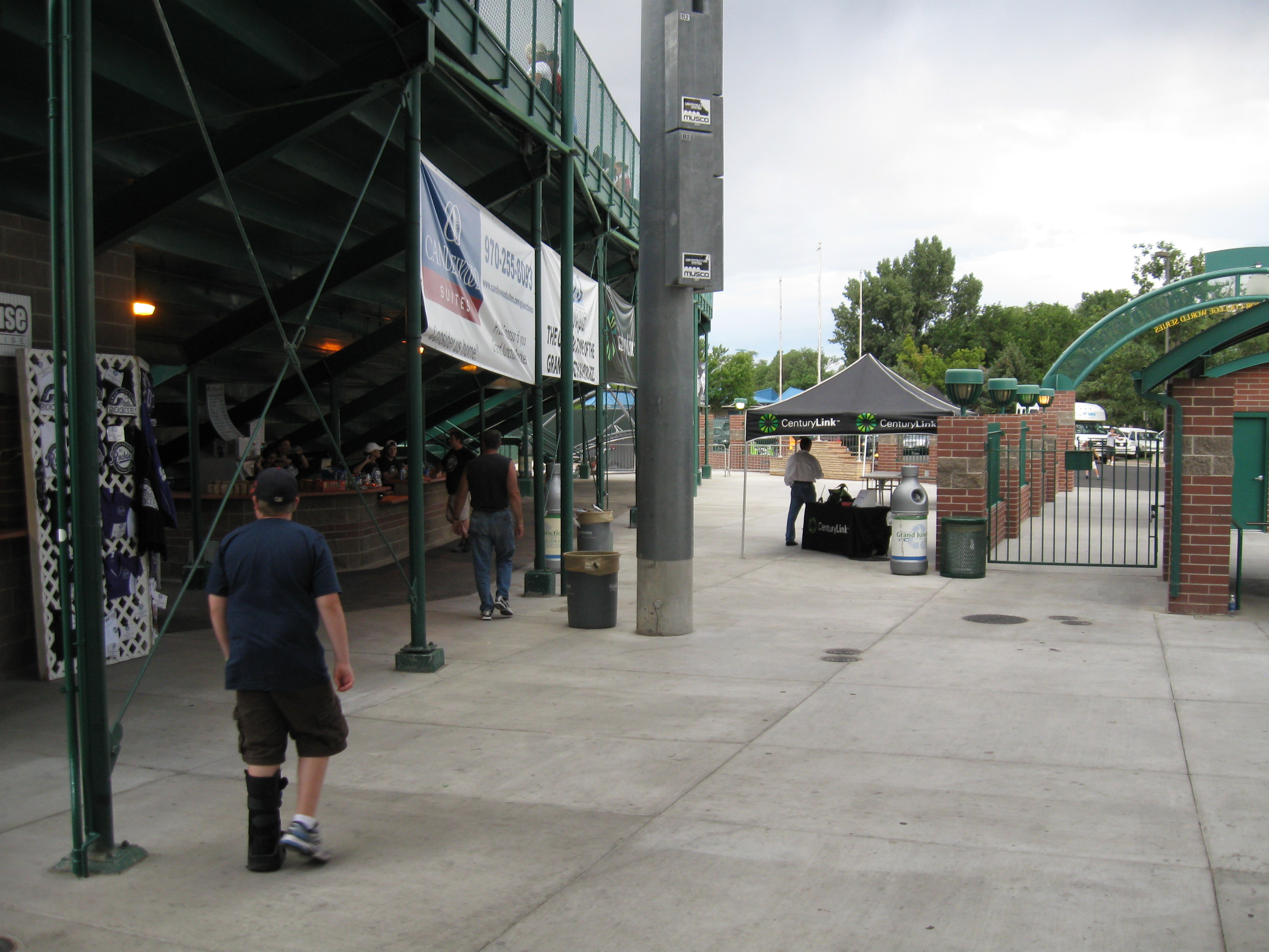 The outside of Sam Suplizio Field is odd in that you don’t really see an exterior. Fans enter behind the park on the first base side under a green archway supported by bricks. It is at least a nice archway saying “Welcome to Grand Junction” with “Stocker Stadium” on one side and “Suplizio Field” on the other (more on Stocker later). There is another entrance on the other side closer to home plate, but few fans enter that way. It has a similar design and from there you see much more of the back of the stadium’s seating structure.