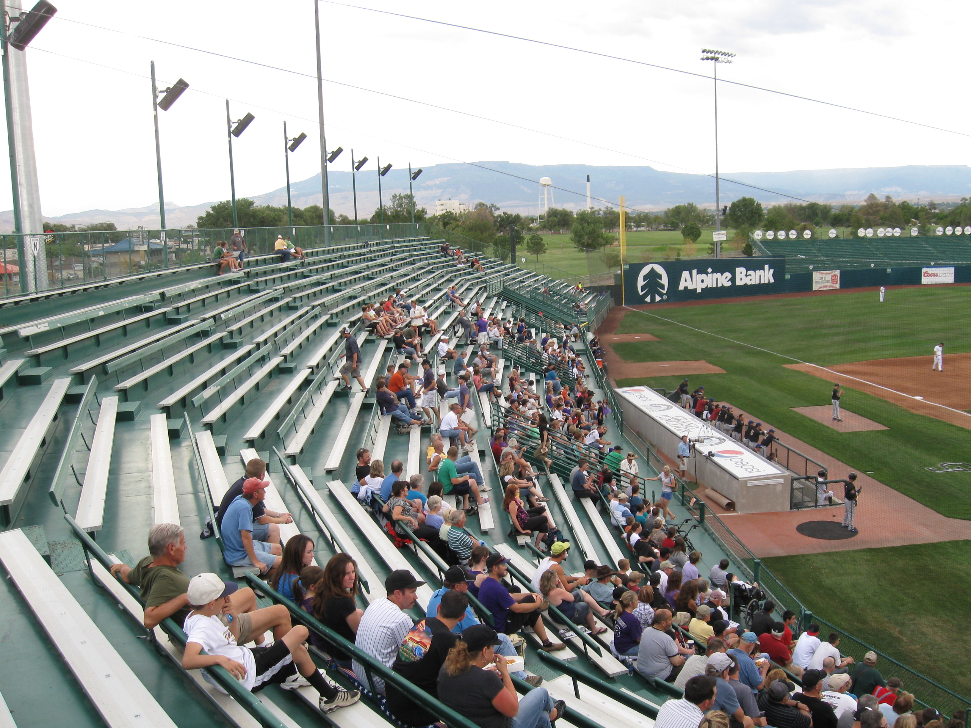 The ballpark is a mile or two northeast of the downtown section, which has a lot of nice local shops and eateries along its Main Street (in fact the night we were there, a huge Farmers Market was ongoing). Closer to the ballpark is Colorado Mesa University along with a suburbanish feel of houses and a commercialized North Ave with fast food joints and local stores. The stadium itself is inside Lincoln Park, which contains a swimming complex, tennis courts and a nine-hole golf course. This makes for an interesting walk to the ballpark as you hear and see kids playing in the pool. All of this does not equate to the common visitor until you get to charming Main Street. There is a small museum here (Museum of the West), but the main attraction is a 15-minute drive west of downtown to the National Monument for a gorgeous drive around the top of the rim.
