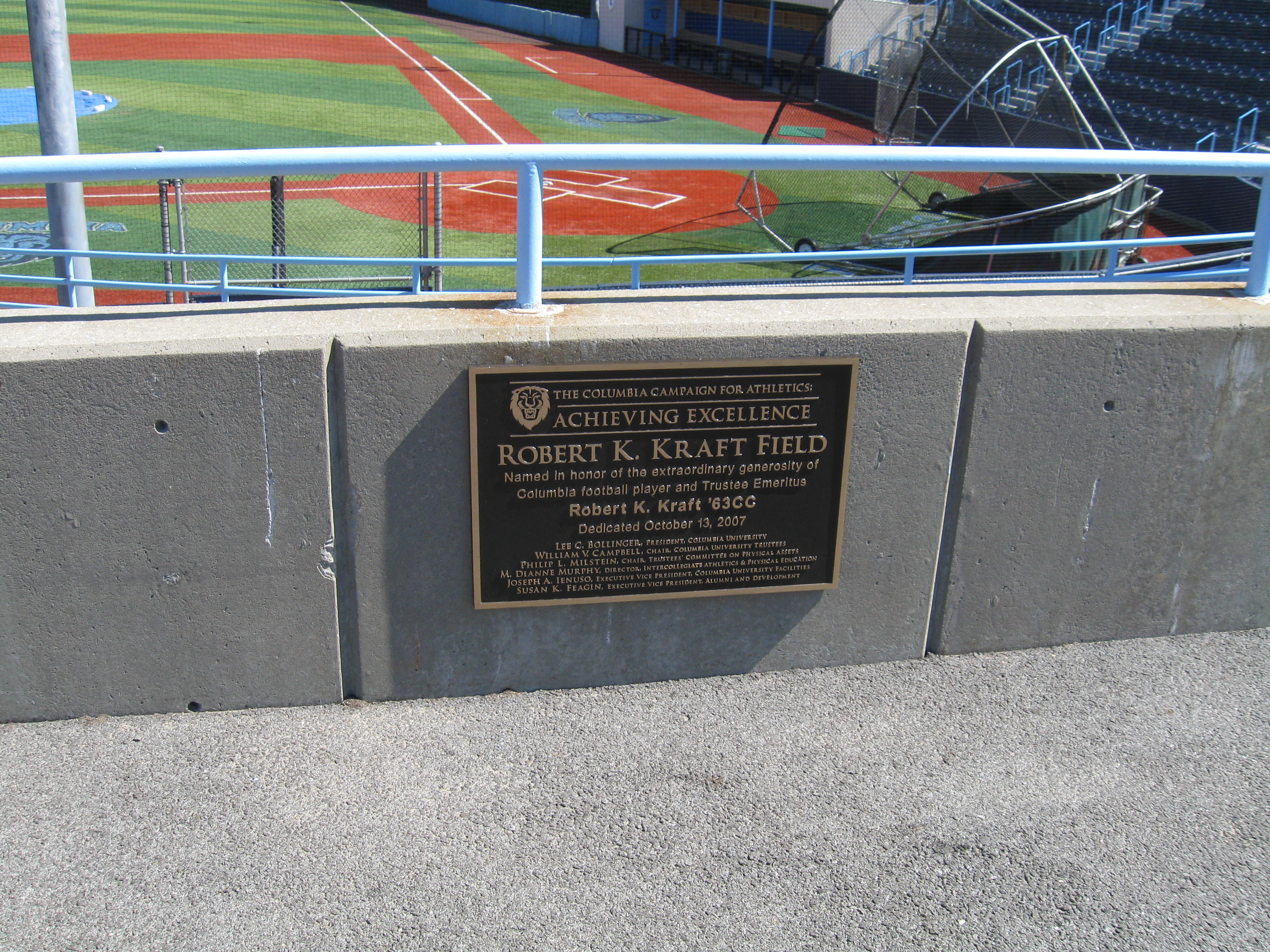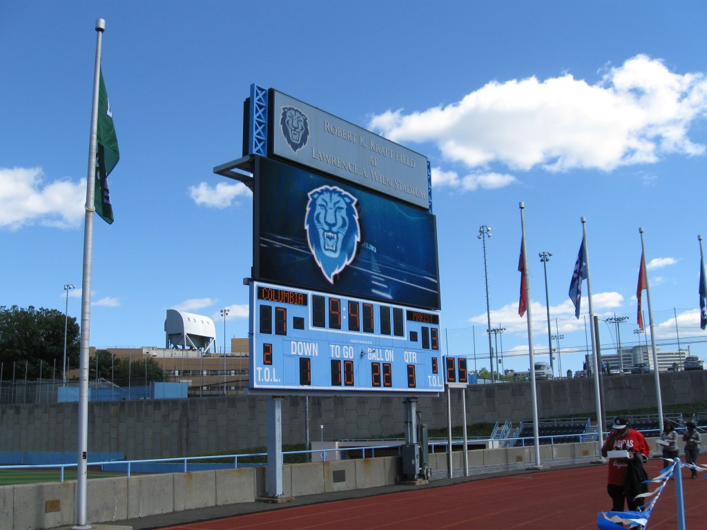 Take a deep breath before saying the full name of Columbia’s football home: Robert K. Kraft Field at Lawrence A. Wien Stadium at Baker Athletics Complex….Other tenants that use the field are track and lacrosse, while there are other outdoor sports in the complex…..In September, Columbia plays for the Liberty Cup against cross-borough rivals Fordham. This is a newer rivalry, starting back in 2002.