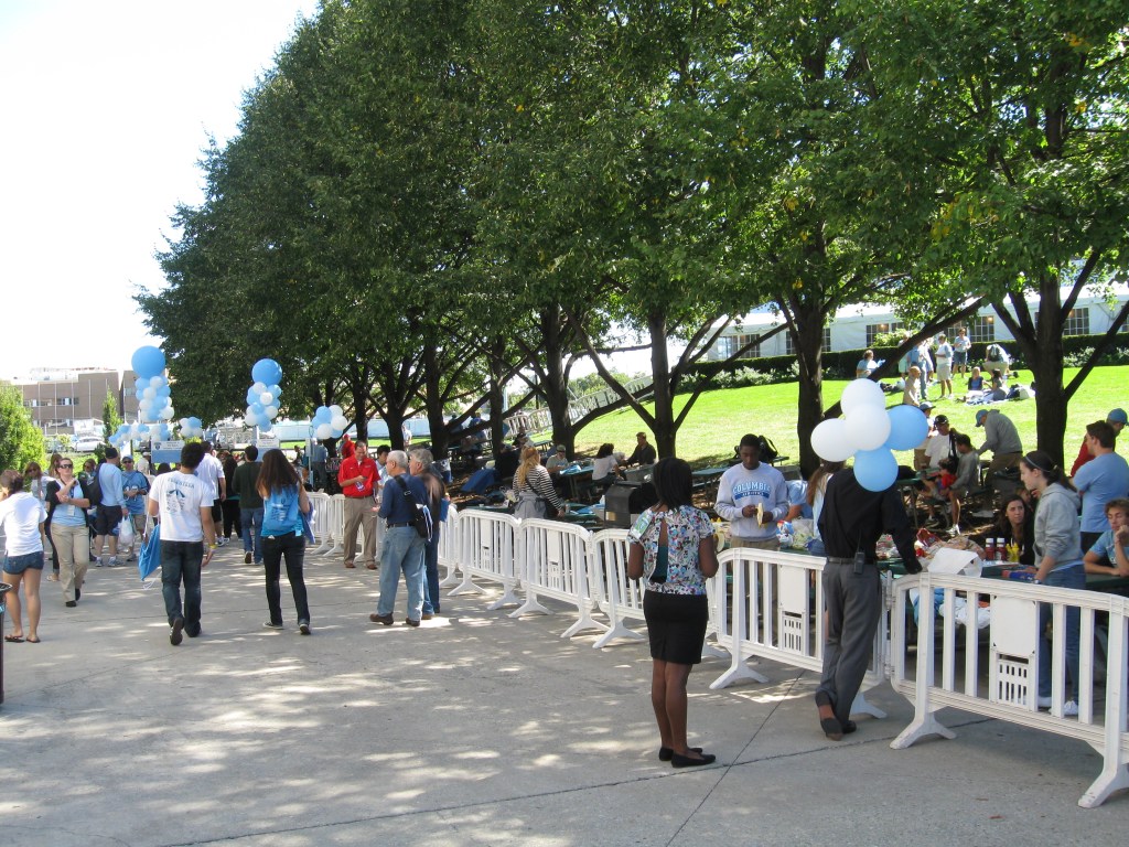 Though not part of the concourse, the Lions have set up a Pre-Game Picnic area just outside the main gates. Fans can sit at tables or on a nearby lawn while enjoying free water, soda and beer. That’s right, FREE! It’s a really good deal, plus there are samples from local restaurants in the area. It’s probably best to take advantage of this area or bring your own food into the stadium as the options inside are limited. Hamburgers, hot dogs, pizza, chicken sandwiches and sausage are pretty much it, along with the usual snacks found at a stadium. The concourse is behind the main seating bowl and there is a lot of concrete here from the walls, overhead ceiling and support beams. Columbia tries to spruce it up a bit with lettering, doors and concessions decorated in light blue, along with a sign above Gate 4 saying “Lawrence A. Wien Stadium” and “Welcome”. There’s enough width to allow room for the crowds usually here. There is an issue with getting to seats on the other side as Columbia does not allow you to walk on the track. Instead, fans have to exit the stadium and walk all the way around the side, re-entering via a stamp on the hand. Given that the visitor’s sideline only has restrooms, it’s a pain for those sitting over there.