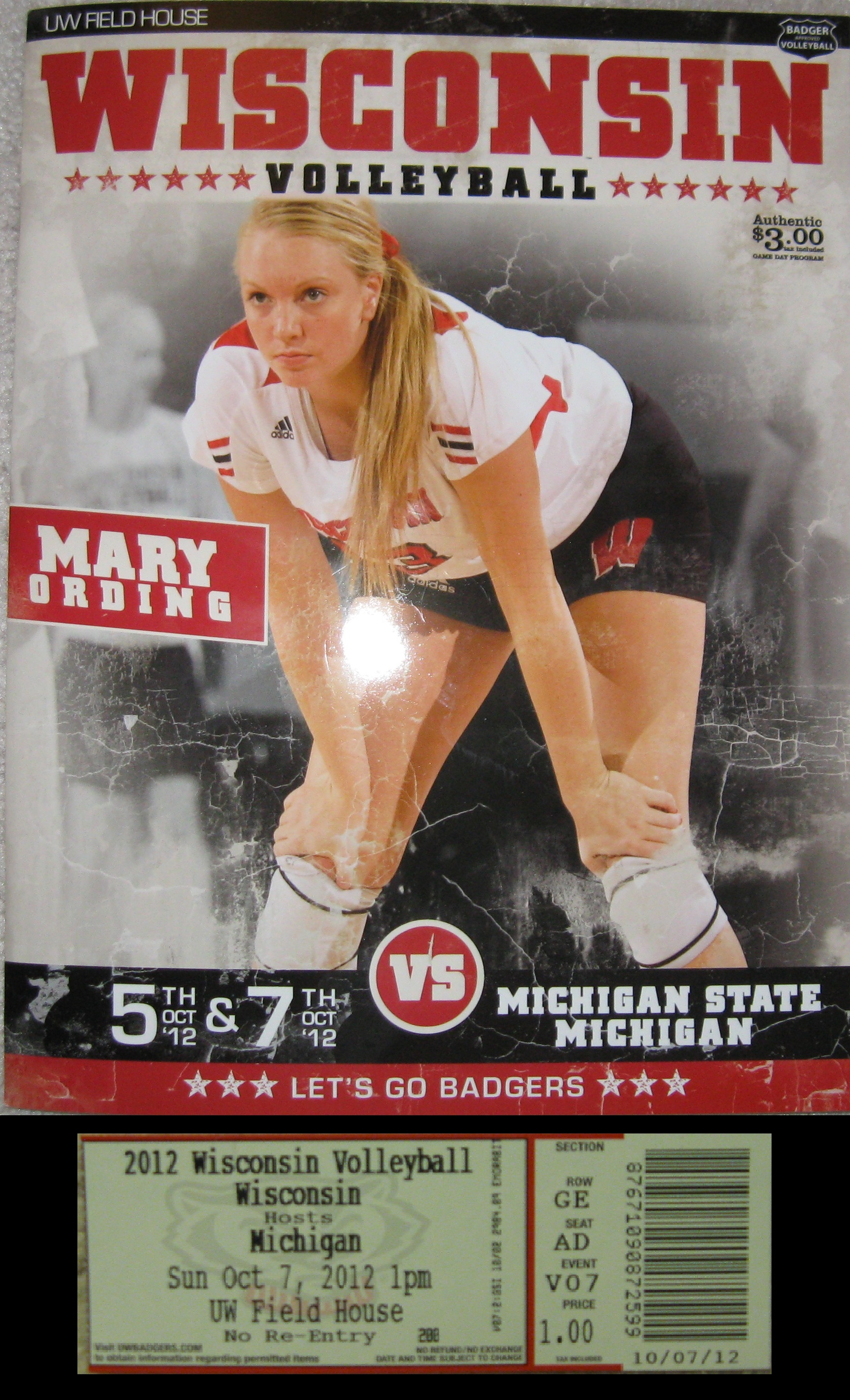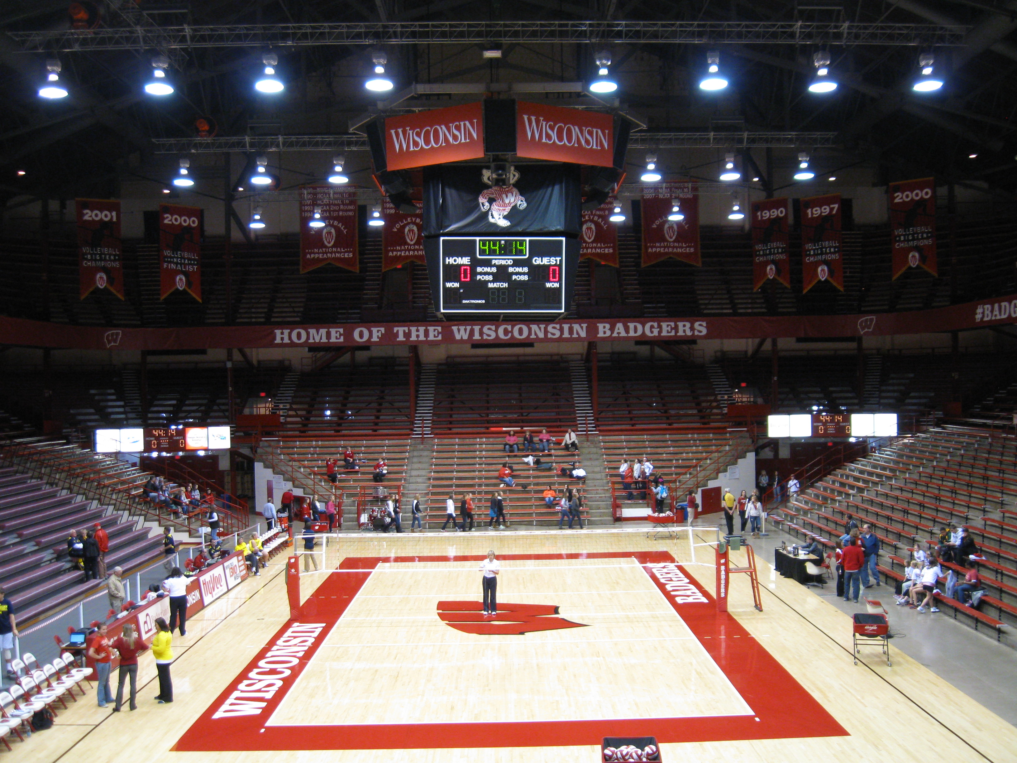 Initially, I thought this arena was called Wisconsin Field House (as it states on the Badgers Volleyball website), but the more I checked out the venue, it became apparent that UW Field House is the more common name…..For a long time, Badger basketball was played in the Field House, until they moved into the beautiful Kohl Center in 1998. Hard to believe this old place housed big time college hoops all the way into the 1990s. Currently, wrestling is the other sport that uses the building…..Bucky Badger is the school’s mascot and he makes an appearance at the volleyball games.