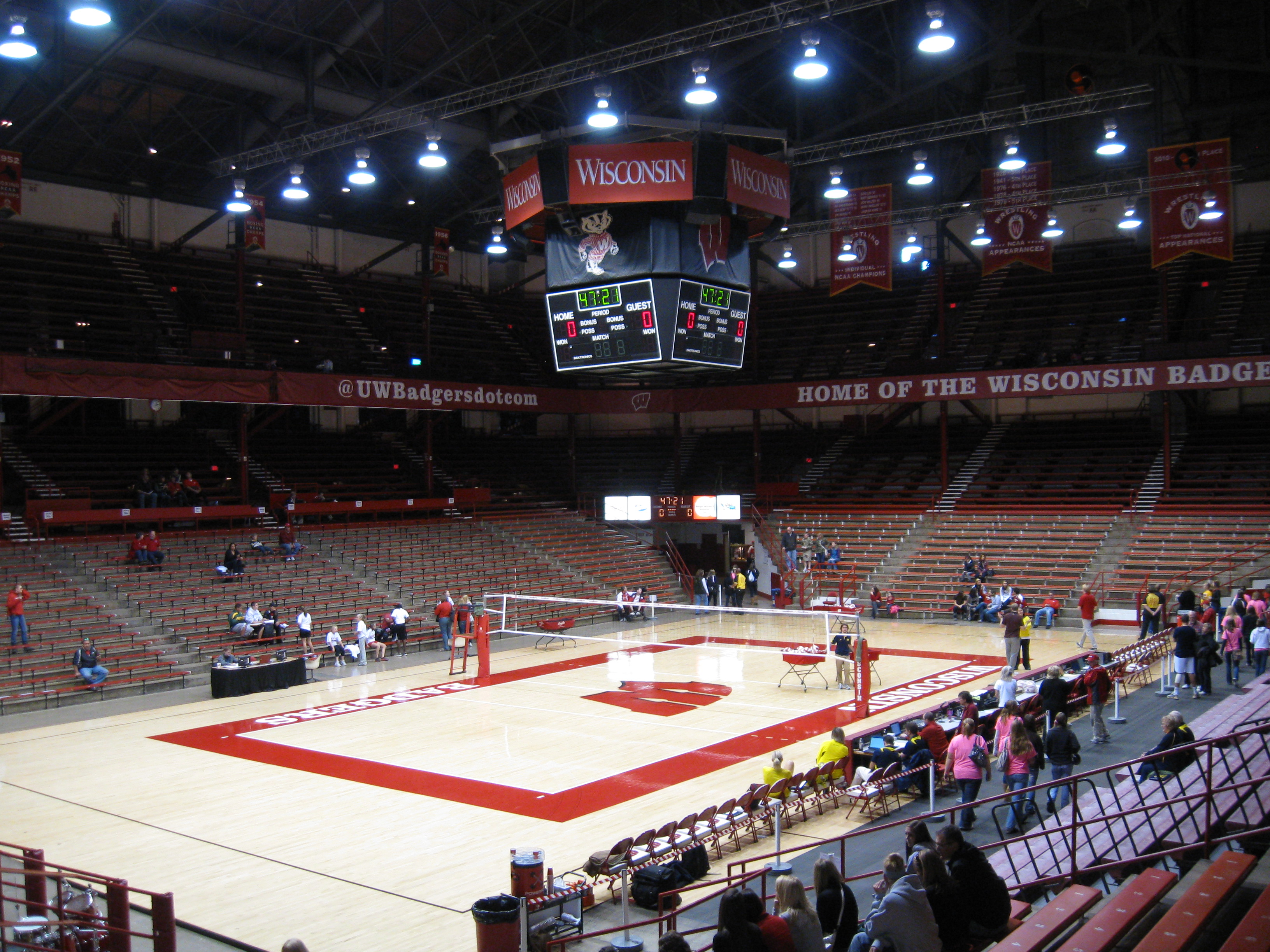 The Wisconsin Badgers have a terrific following and that goes for all sports. On a Sunday afternoon when the Packers were playing, the game attracted a legit 3,704. So far through the 2012 season, Wisconsin ranks fourth nationally in attendance and over the last decade, they have been somewhere between #2 and #4. Average numbers typically are in the three to four thousand range, however during their last NCAA tournament appearance (2007), the UW Field House had some matches that were quite full.