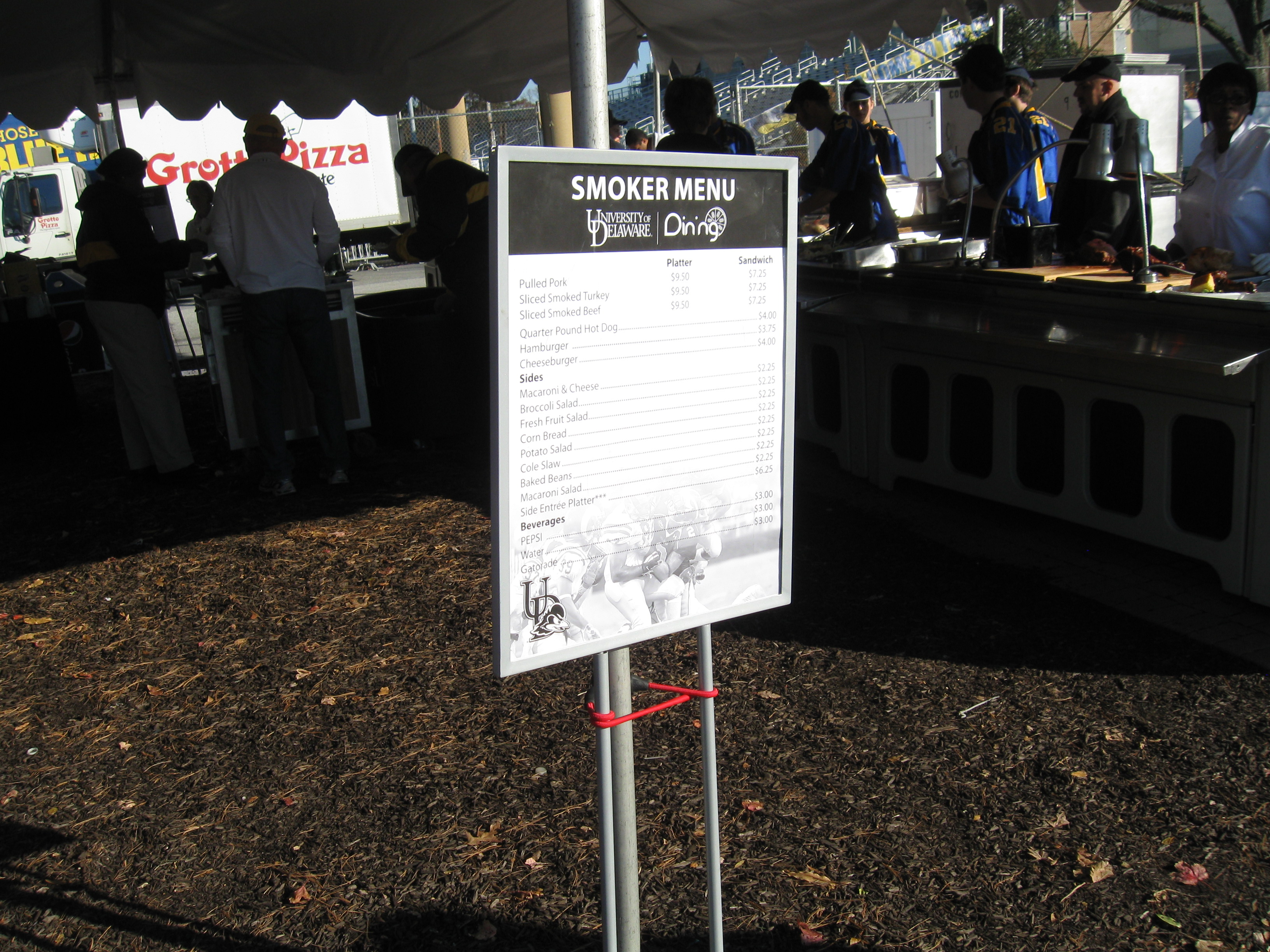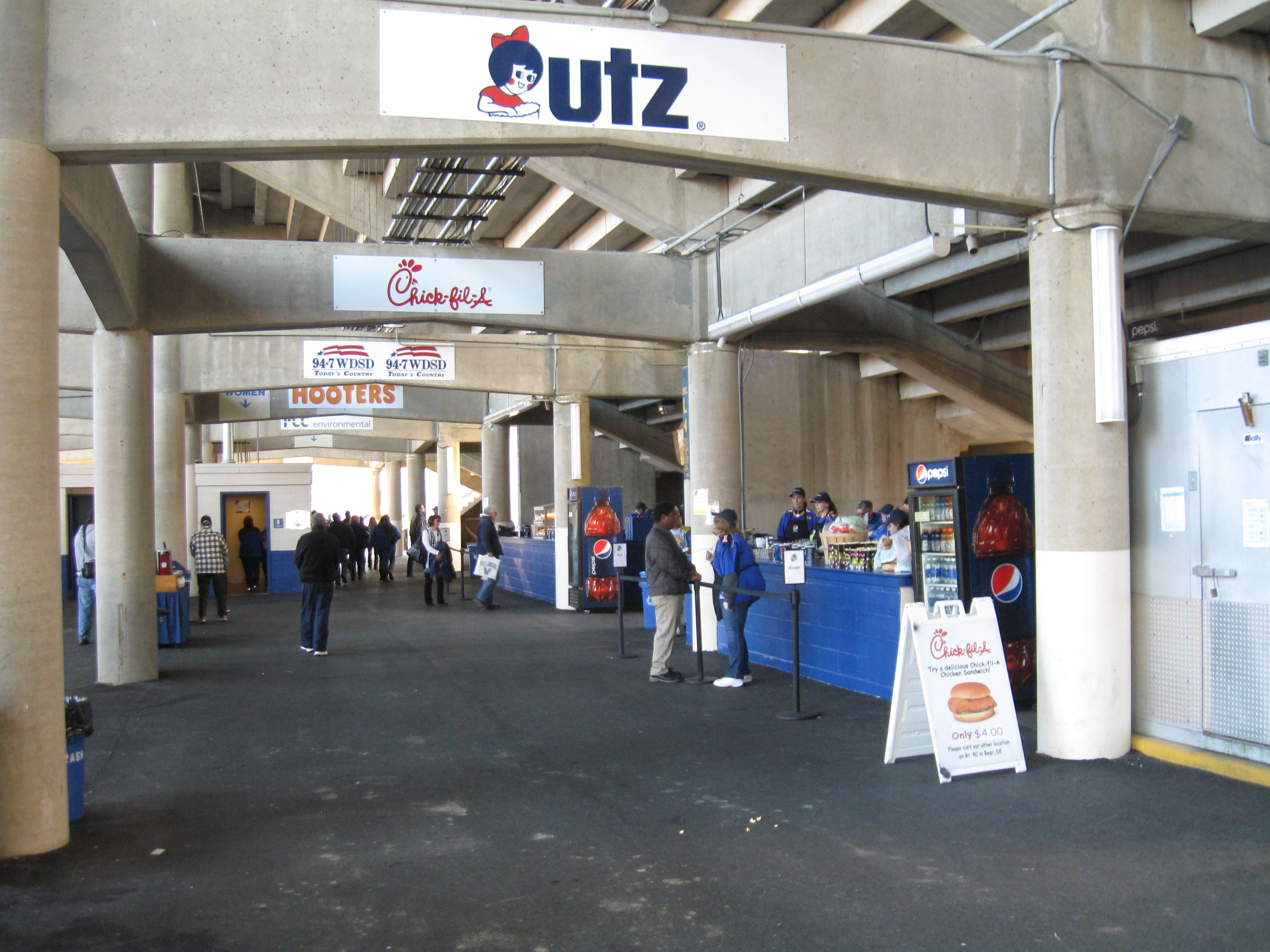 Nothing stood out, however the assortment was adequate. Along with the hot dogs, there was barbeque beef and pork, with the aforementioned fan zone adding a slew of sides to the meals. Other available items included pizza, chicken fingers, Chick-Fil-A sandwiches and Philly cheesesteaks. No alcohol is served at Delaware Stadium and soda is in the form of Pepsi.