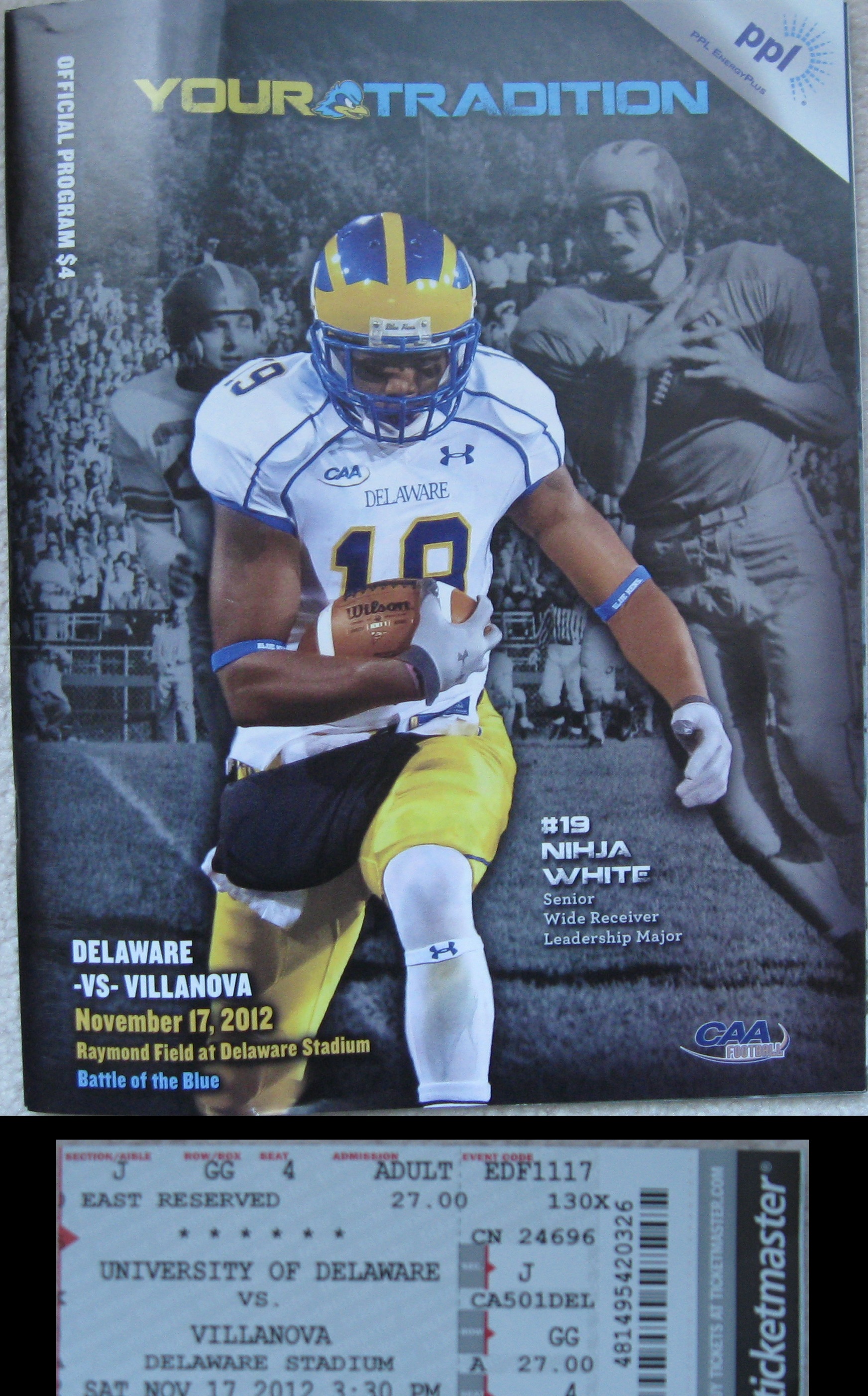 A couple weeks prior to this visit, Hurricane Sandy impacted the area significantly and I had to change plans. This game was still favorable on the schedule and I was able to make it down to Delaware for the Blue Hens’ season finale. The University of Delaware takes up much of Newark (pronounced New-ark, as opposed to New Jersey’s New-erk), a college town of about 31,000 in the Northwest part of the state. UD is a public ivy with a high academic standard that includes strong chemistry, engineering and pharmaceutical programs. The school also is a football powerhouse, with six national championships (one at the FCS level). In the past decade, they won a title (’03) and appeared in two title games. Though I attended a game during a down season, it is quite apparent that this is the state’s most popular team in any sport and the very good fan support help offset an average facility in Delaware Stadium. The place was built in 1952 and despite several expansions and renovations through the years, the core interior set-up remains similar since the 70s.
