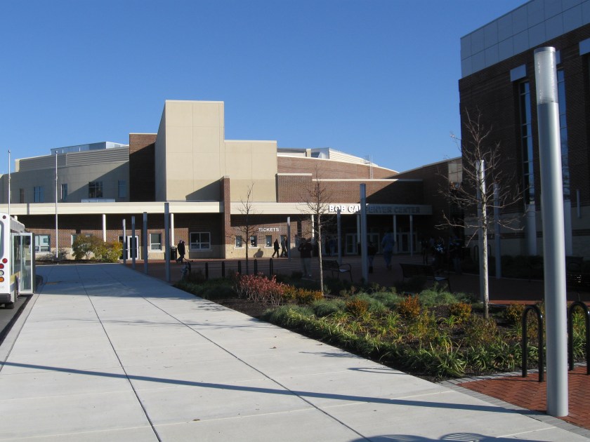 Delaware’s athletic teams are known as the Blue Hens, which is the state bird…..Though the facility is known as the Bob Carpenter Center, the arena portion is called Acierno Arena, named after a businessman who contributed monetarily. The most commonly used and associated name for Delaware’s home is the Bob Carpenter Center (or the Bob)…..The club portion at the top of the arena doesn’t have the most ideal view of the basketball court, but it does have an impressive end zone view of the football stadium from its back windows…..In 2010, an addition was built and attached to the southeast of the complex. The new building includes a practice facility along with new athletic offices.
