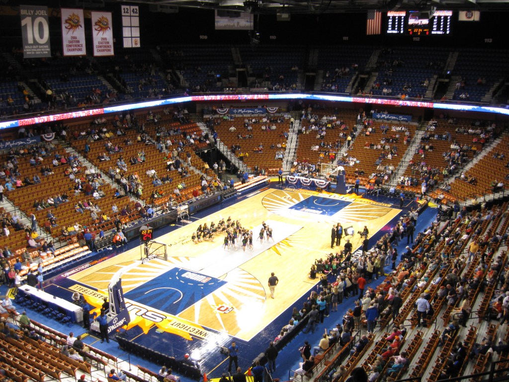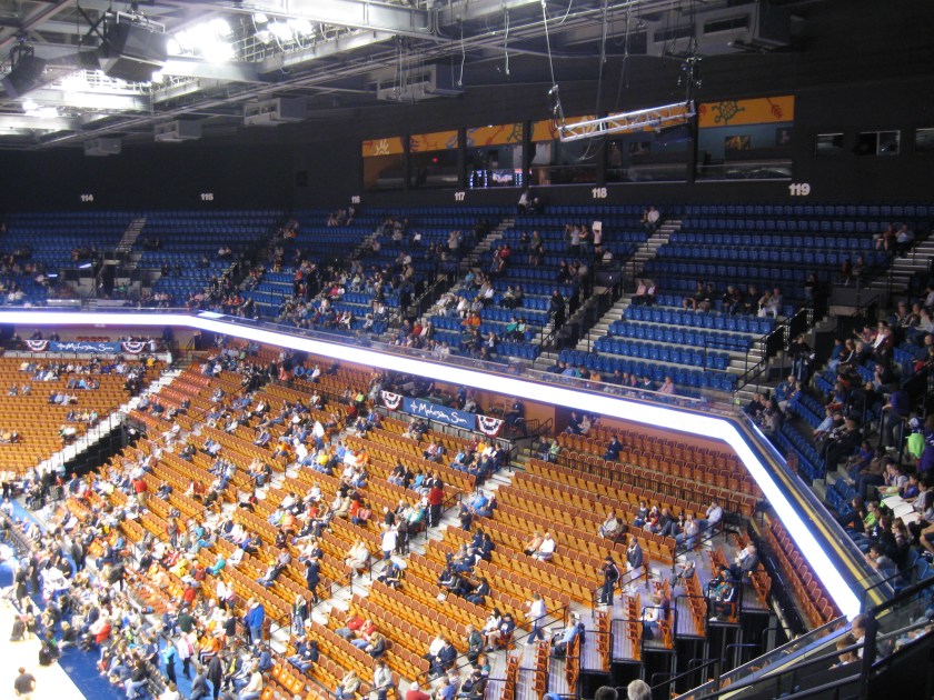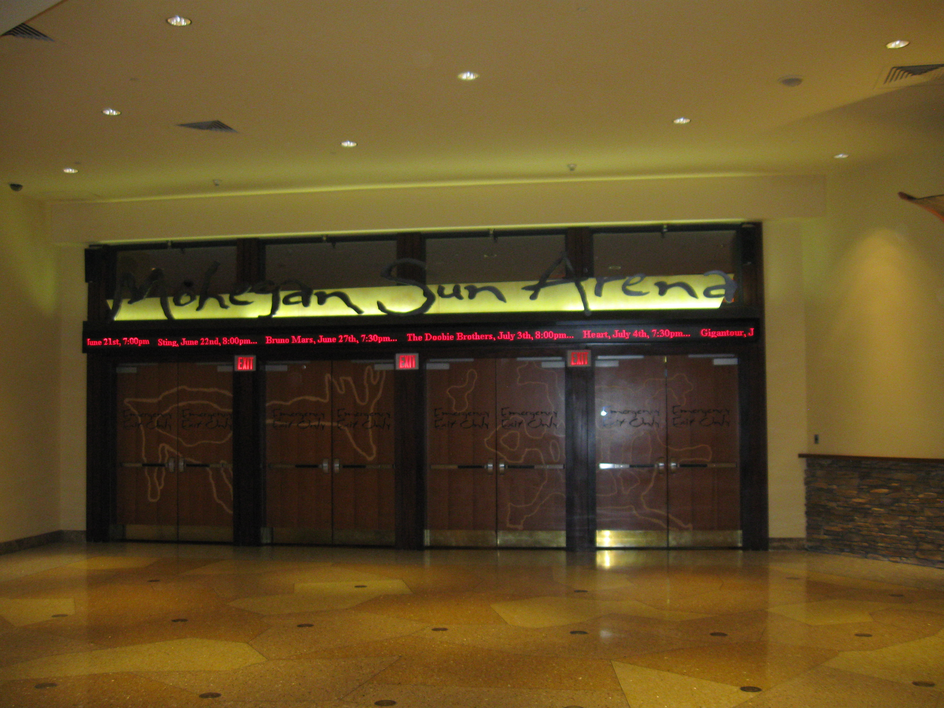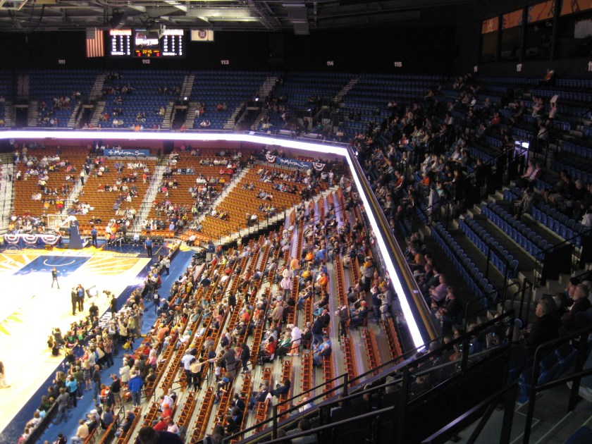 Mohegan Sun is on Route 2A, just off of I-395 which runs North-South thru the eastern part of Connecticut. This interstate also connects with I-95. The huge casino has four parking garages, meaning space is not a problem. The Riverview Garage is best for the arena and if that happens to be full or blocked off, be prepared for a hike thru the casino as the arena can be a good 10-15 minute walk from the other garages. Signs to reach and find the arena are plentiful. Because most people leisurely leave after games, traffic wasn’t a problem.