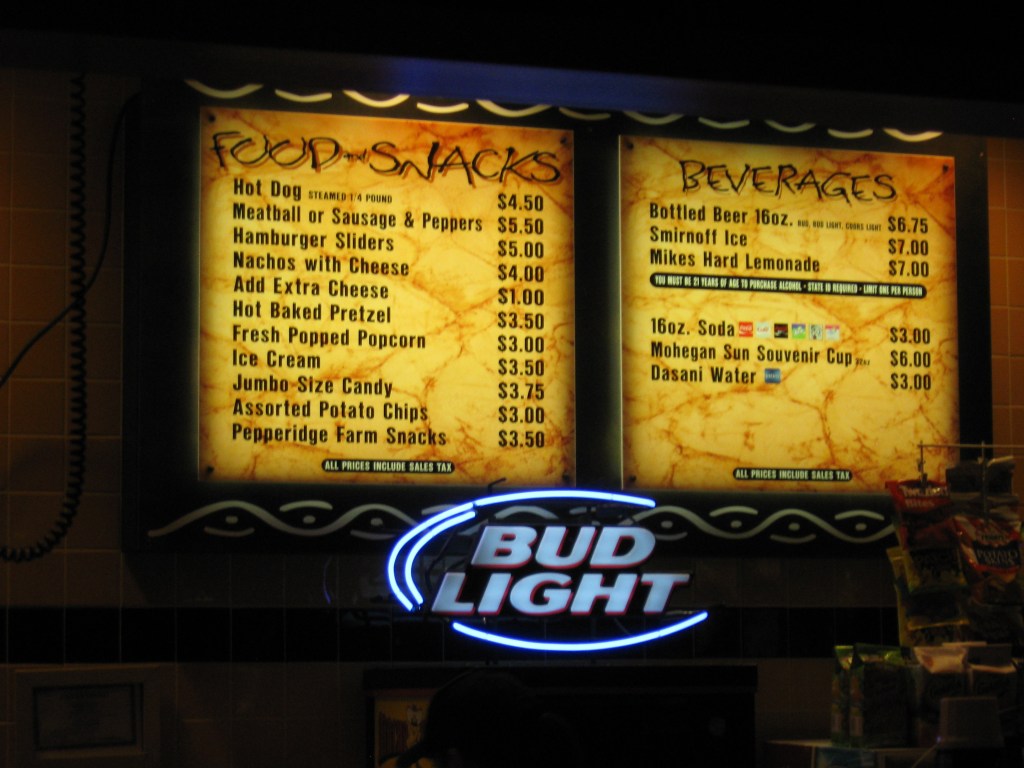 Food stands were plentiful, but the majority of them offered the same thing which was the standard stadium food, snacks and beverages (meatball grinders may be the lone exception). Not that I expected much given the plethora of food elsewhere in the casino. There were a few specialty offerings around including a chicken parm sandwich and a couple surprising hors d’oeurves (one with veggies, the other with pepperoni, cheese and crackers). Beer was similar in that you can find a lot of Bud, Coors and Miller.
