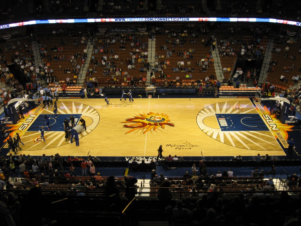 This visit featured a couple of firsts for me: a WNBA game and a casino arena. On a Memorial Day weekend trip to see the attractions in Mystic, CT, we took in the season opener for the Connecticut Sun. The Sun are unique in that they are one of only a few teams not partnered or in the same city as an NBA team. They moved to the Nutmeg State from Orlando in 2003 and were lured there thanks to the great popularity of the Huskies women’s team. After two early conference titles in ’04 and ’05, along with subsequent playoff appearances, the franchise is still looking for its first WNBA championship. Games are played in Uncasville, a small village in the southeast part of the state between Norwich and New London along the Thames River. The area is highlighted by the Mohegan Sun Casino, built in the mid 90s when the Federal Government recognized the tribe and their land. In 2001, a near 10,000 seat arena was added inside and was furnished similarly to the casino. With a perfect location and a great atmosphere, Mohegan Sun Arena is an excellent place to watch a game.