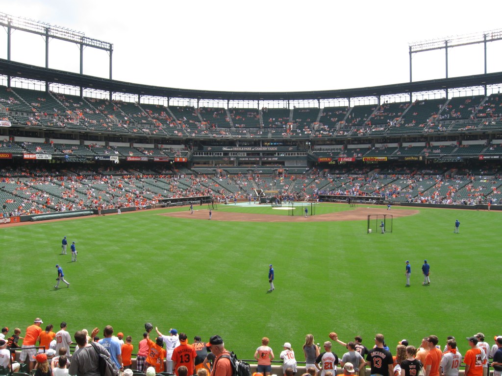 For our visit, the atmosphere was very good with a certain buzz in the crowd. Often they tried to pick up the O’s from a deficit and when the home side did make something happen, it was met with resounding cheers. “Let’s Go O’s” chants were generated more than a few times. It seems atmosphere can be hit or miss (as opposed to ten years of miss), just be aware that Yankees and Red Sox fans still take over in the regular season when their team is in town. Traditions at Camden Yards include the yelling of “Oooo” when the “Oh say does…” part of the Star-Spangled Banner comes on. Meanwhile late in the game, John Denver’s, “Thank God I’m a Country Boy” plays after the seventh inning stretch. Not sure why, as Baltimore isn’t exactly the country, but this tradition has taken place since the 1970s.