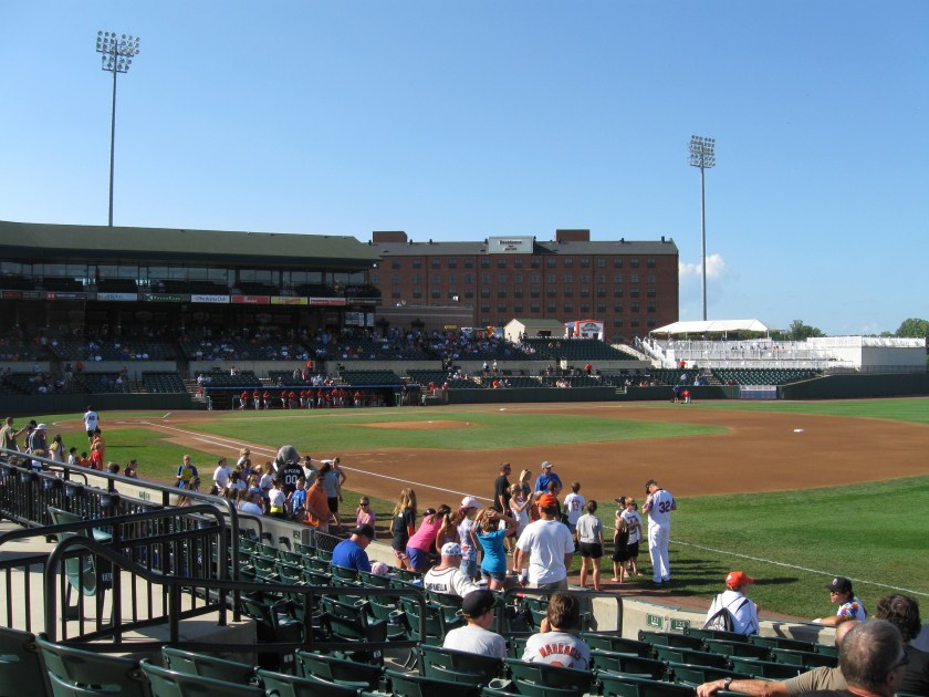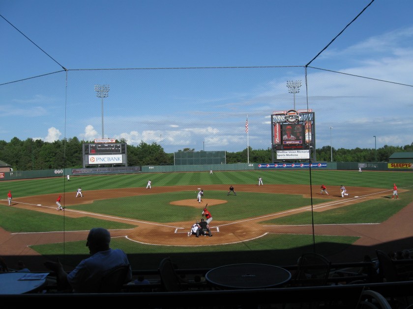 A day after visiting Camden Yards in Baltimore, we made the 30 mile drive northeast to visit Baltimore’s Single-A affiliate in the NY-Penn League, the Aberdeen IronBirds. Located at the beginning of the Chesapeake Bay, this very small city of just 15,000 is likely most known for its expansive US Army weapons testing facility called Aberdeen Proving Ground. In the early 2000s, city native Cal Ripken Jr, bought the Utica franchise and moved it here to Aberdeen, where his likeness was used for the team nickname. Additionally, the stadium was named after Ripken as the team began play in 2002. On the field, the IronBirds have struggled as they haven’t even reached the playoffs in their history. Ripken Stadium does well in the short-season league and while the design is built to mimic Camden Yards, I felt some uniqueness and character was missing here.