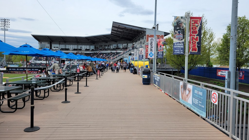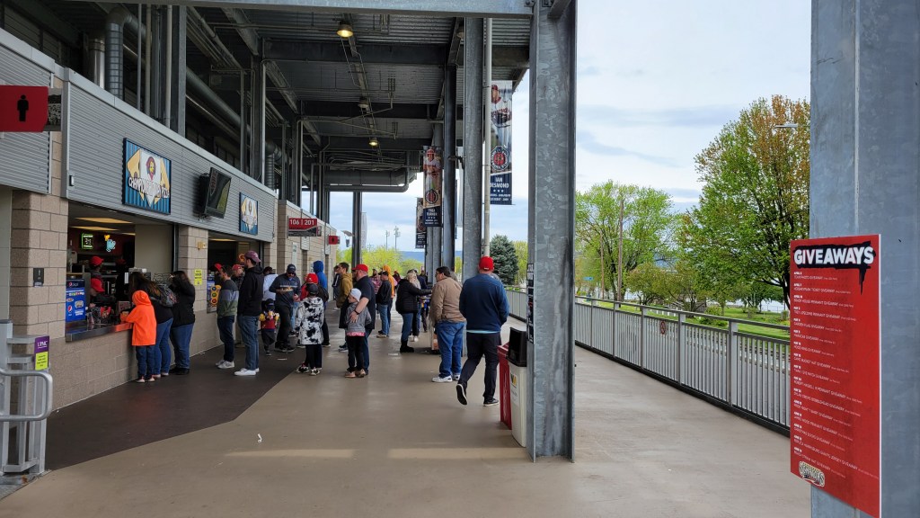 On the weekend, if you arrive early enough to City Island (which I did) parking is free! Otherwise it is $5 for the game, which is average for the minors. Garages across the river do cost a bit more. Tickets have gone up to $13 – $19 and that too is typical of an Eastern League game. Club seats at $38 are a good deal given that it includes food and indoor space. Some concession prices have come up a lot in 2024 with a Cheeseburger now $8.50 along with a local beer and it is off-putting that they do not include sales tax in their prices. Hot dogs at least were only $3.50 and there was a Kids Meal option for $6.50.