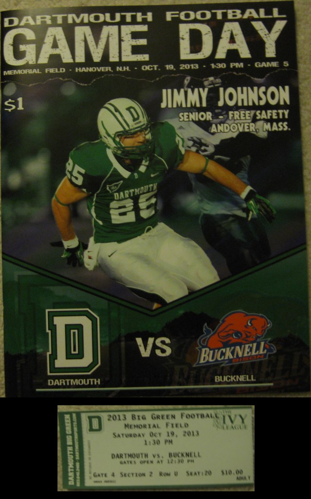In a defensive battle, Dartmouth’s early second quarter touchdown was the only score of the first half as the Big Green took a 7-0 lead into halftime. With their offense playing terribly (and only possessing the ball for 9:42), Dartmouth’s defense did well in the second half, but finally succumbed to the Bison. Two fourth quarter touchdowns put the game away, one of them on a bad decision as Dartmouth accepted a holding penalty that if declined would have made it fourth and goal. The Big Green blocked a punt with under a minute left and backup QB Alex Park threw a 21-yard pass to Bo Patterson, but the onside kick failed and Bucknell won 17-14.