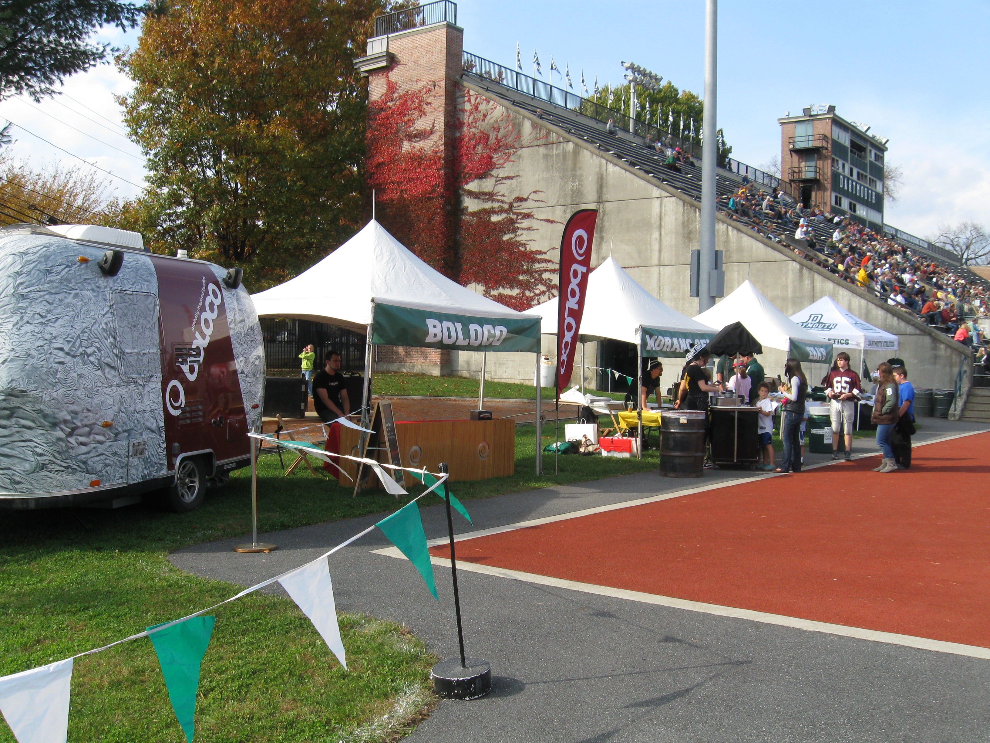 Food consists of basic items in that stand underneath the main seats, while outside are more options, including cheeseburgers, chicken tenders and fries. Tents in the open-air section on the track behind the south end zone house more local products. These include Eba’s Pizza, Morano Gelato and Bolco Burritos.
