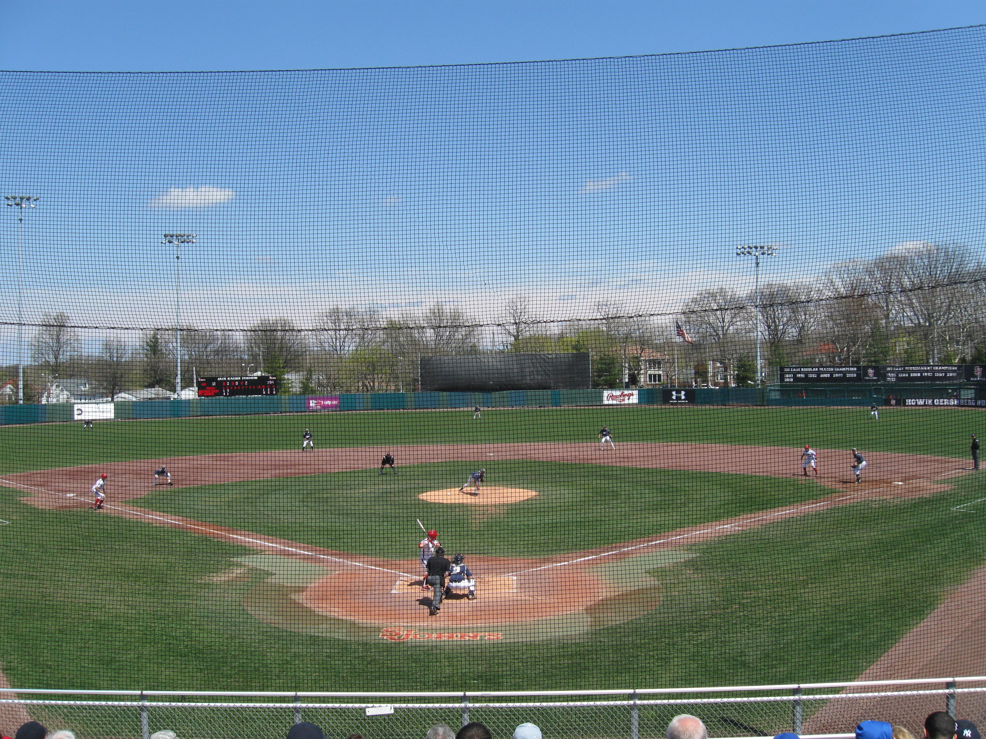 I counted 276 people in the stands during the third inning, while the official box score didn’t take the time to count, instead guessing nearly triple that. Fans were a mixed group and it was good to see many students on hand. The only show of support was when a run was scored as about half of the crowd took the effort to applaud. Most noise came from the dugout and the families of players sitting behind that dugout. When the Red Storm put a run on the board, Ace Frehley’s catchy “New York Groove” would play over the speakers. One note, in the 2007 game that Jack Kaiser was honored with a renaming of the stadium, less than a thousand were on hand.