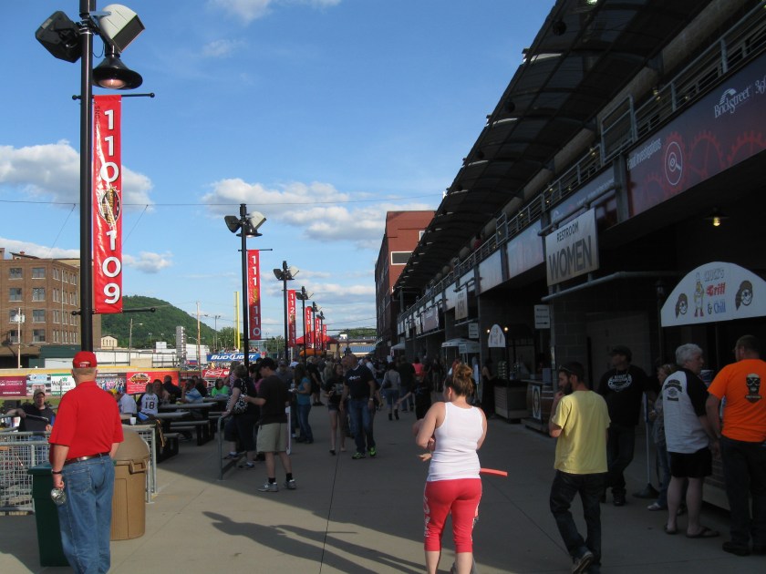 Pretty much all of West Virginia’s main interstates (I-64, I-77 and I-79) converge right to the center of the state to Charleston, making for an easy arrival. Plenty of parking can be found in the surface lot at the strip mall next door, or in the hospital’s garage across the street. Traffic is hardly an issue and finding the ballpark from the interstate is simple. However we ran into several streets in the city that were strange and confusing (specifically near our hotel at the convergence of the rivers and around the Capitol Complex). Be aware as there are some odd features as well, like two different stoplights for two lanes going the same way. It confused even this hardy Jersey driver.