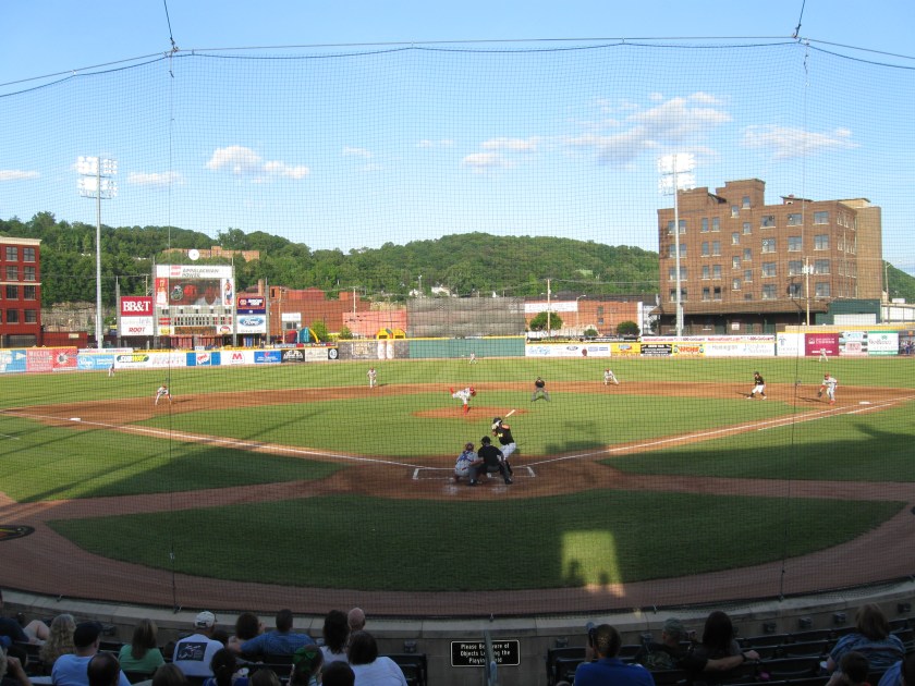 I absolutely love the nickname, logo and color scheme of this team. “Power” has many meanings, including energy (West Virginia is a big producer of coal and hydroelectricity) and the state capitol. The logo is sharp, as is the coloring of black and yellow…..After having many affiliates, Pittsburgh has been the parent team since 2009….Prior to moving downtown, the team played in Watt Powell Park, a stadium across the river in the more open Kanawha City. The stadium built in 1948 was demolished after the move……The promotion for the game I saw was “Redneck Night”, which didn’t help the stereotype on my first trip to the state. This theme included a real wedding with ceremonies throughout the game…..Appalachian Power Park hosts the West Virginia State High School Tournament, the University of Charleston and occasional games for Marshall University and West Virginia University.
