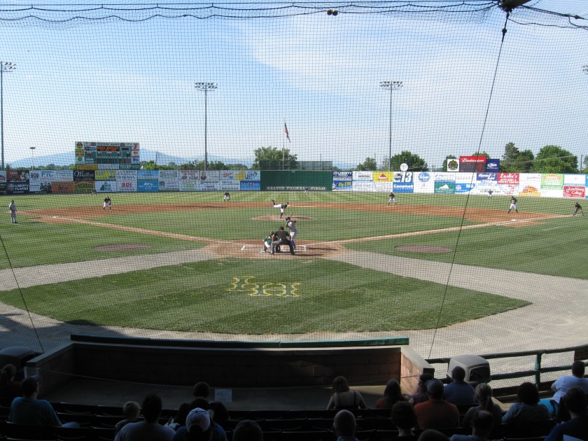 I never know what exactly to official call this stadium as it seems interchangeable between the new name and the old “Lynchburg City Stadium”. I went with the Falwell moniker because there is actually another “City Stadium” right next door that is referred to by the same name. That one is a football stadium built at the same time and it is home to a pair of local high schools. The 9,000-seat stadium has plans for a renovation soon……We were treated to an excellent rendition of the National Anthem by Jay Daniels……One note if spending the night in town, the region is a noted historical area and close to Lynchburg are several sites for history buffs, including where the Civil War ended in Appomattox and the National D-Day Museum in Bedford.