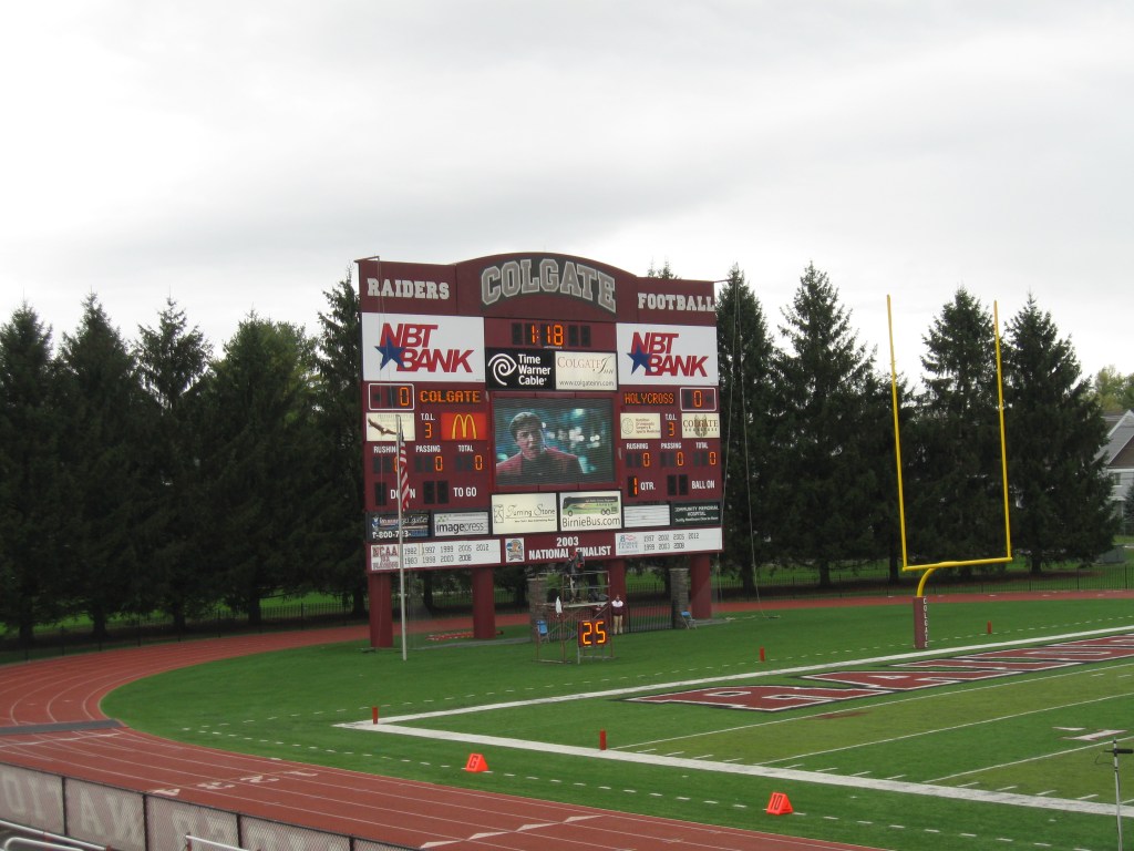 A rainy morning began this visit to my fourth Patriot League stadium, but enough of a break in the weather developed for a predominately dry game in the serene setting of Colgate’s campus. Located in the Chenango Valley and the tiny village of Hamilton (home to just 4,000), is Colgate. The small private school focuses on liberal arts and the university is highly regarded and often in the top portion of various rankings and lists. Raiders football has a pretty deep history that goes all the way back to 1890. Perhaps the most famous season is the 1932 “undefeated, untied, unscored upon and uninvited (to the Rose Bowl)” team. Since joining the FCS level in the early 80s, Colgate has won 7 Patriot League titles and made the playoffs 10 times. The 2003 squad made it to the I-AA championship game. The home to Raiders football is Andy Kerr Stadium, built in 1966 with the main east side seating area constructed 25 years later. Though there is nothing spectacular about the experience, the football setting with limited media timeouts and a beautiful Autumnal backdrop is the sport at its finest.