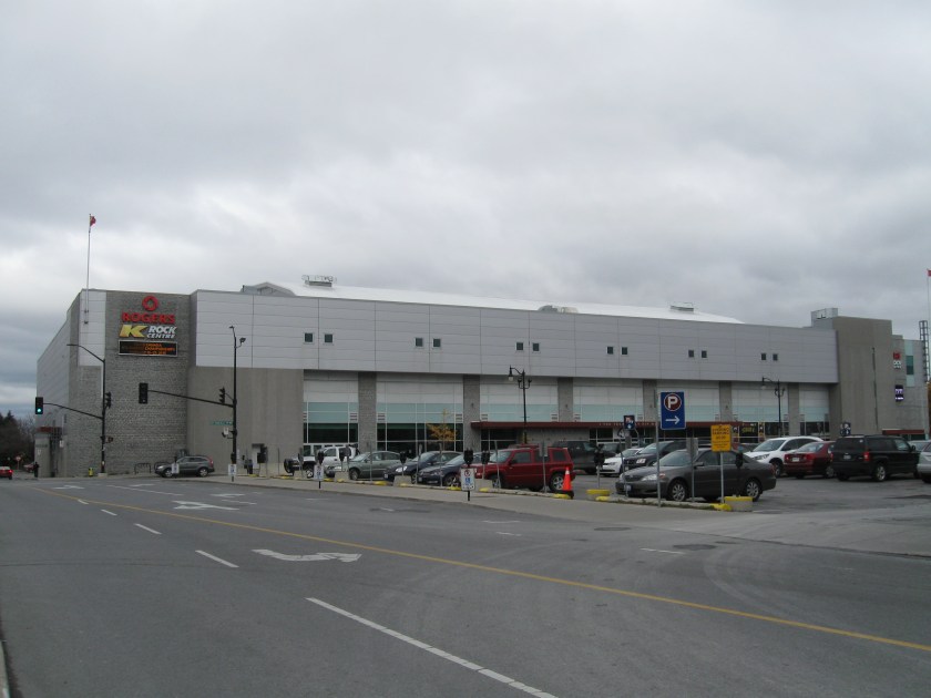 My third venture into the OHL was part of a hockey doubleheader that began in Kingston and ended with a return to Montreal. On a cold November day, we started in the historic Limestone City, which is Canada’s 40th largest city with a population around 123,000. Originally a settlement founded in the 1600s, Kingston began as a trading post and fort before growing into a shipbuilding center thanks to its location on the northeast shores of Lake Ontario. Now, education and military play a significant role in the city. In addition to having a great deal of Canadian history, hockey is said to have its origins in Kingston along with being home to the first Memorial Cup. Junior hockey goes back many decades and the Frontenacs nickname took over during an ownership change in 1988. The team has perpetually struggled as their last division title came 20 years ago. While an OHL championship is absent, Kingston has not even won a playoff series since 1998. After spending decades in the dumpy Kingston Memorial Centre, the Fronts moved into the K-Rock Centre downtown in 2008. With the advantage of being in a terrific location, the new building makes for a nice, modern home for Kingston hockey.