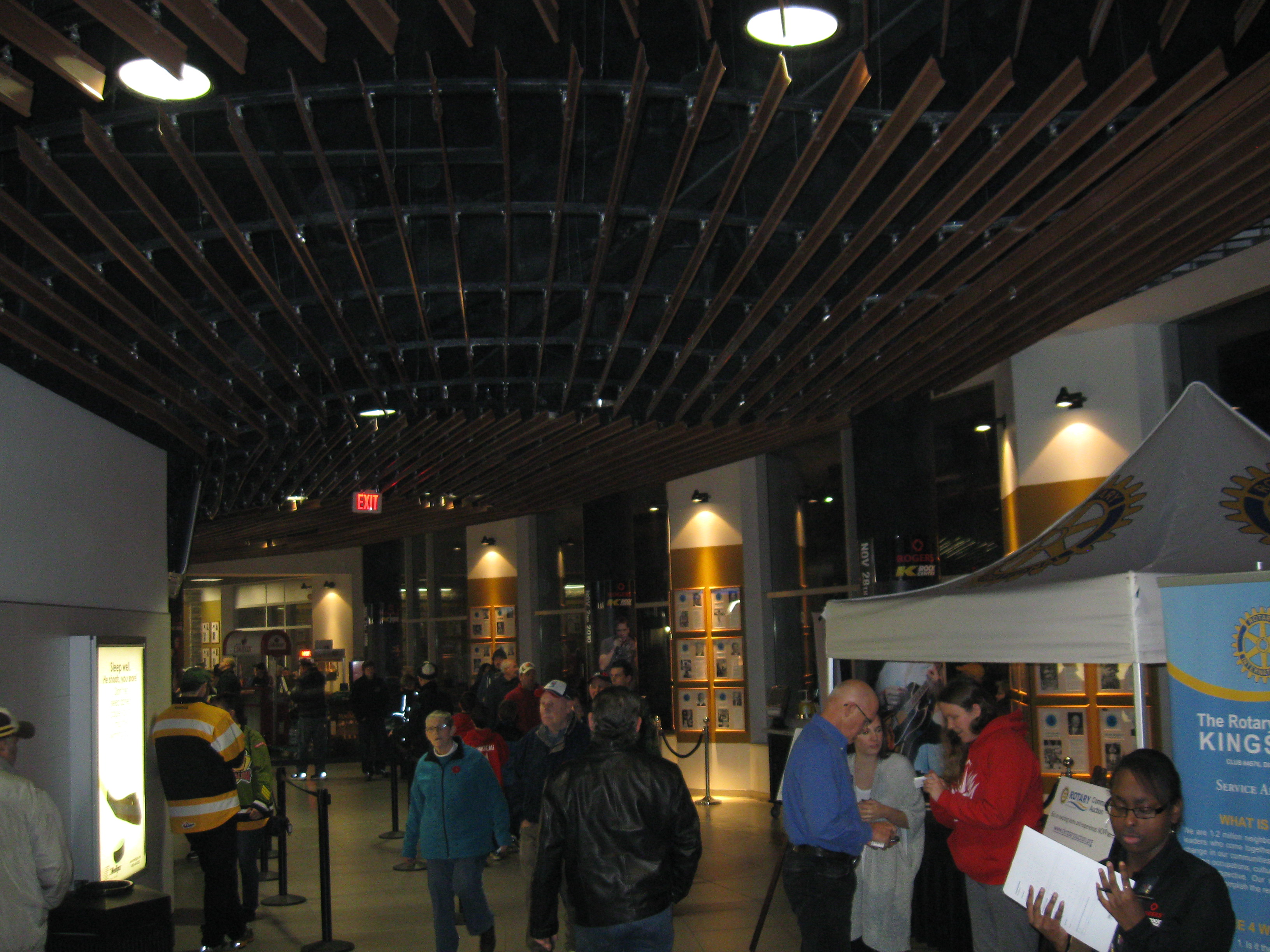 Kingston Memorial Centre was the hockey home before the new arena and this cramped, crumbling and generally uncomfortable arena opened in 1951 with seating for 3,079. It is still standing thanks to those in the community who fought hard to save the building, park grounds and the memorials to veterans. Along with other recreational activities, the Memorial Centre hosts Queen’s College hockey…..Speaking of that school, an ancient rivalry continues to this day with Royal Military College. Each winter, the two teams play an outdoor game on the frozen lake using rules and uniforms from the 1800s. How awesome is that!?…..More history can be found at the International Hockey Hall of Fame, however the original HOF is fledging and looking for a permanent home as just a temporary exhibit exists currently…..Popular musicians The Tragically Hip is from Kingston and the street in front of the new arena is known as “The Tragically Hip Way”.